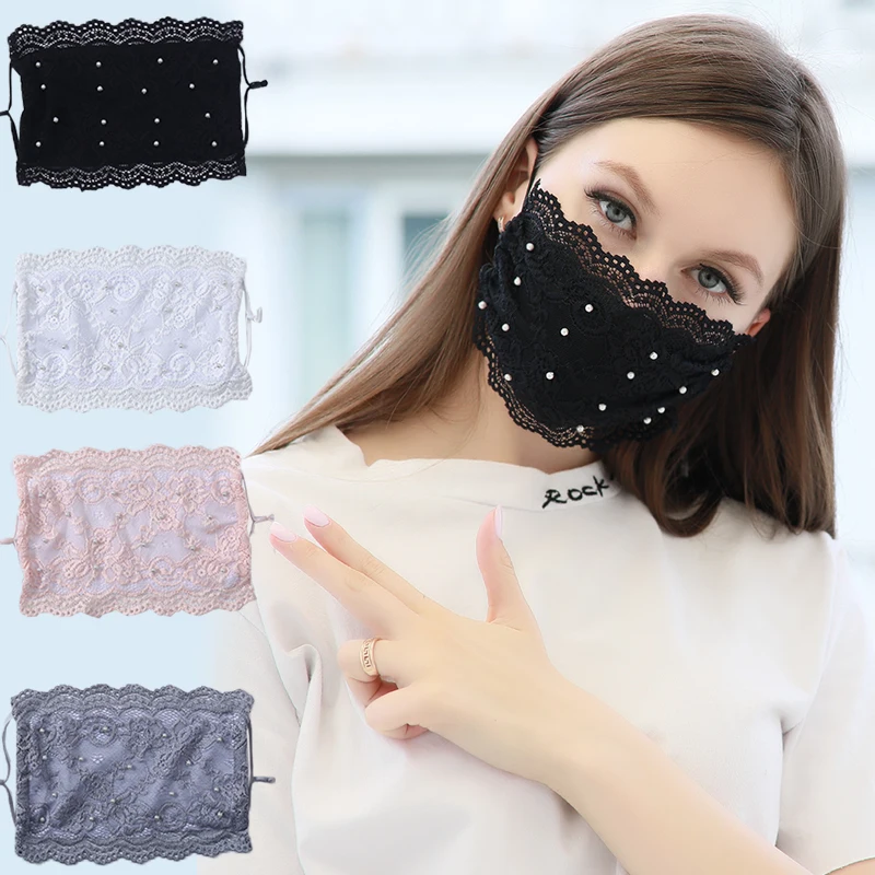 Кружевная блестящая черная маска для рта многоразовая маска для взрослых моющаяся модная женская маска для лица Ткань для нового года 2021