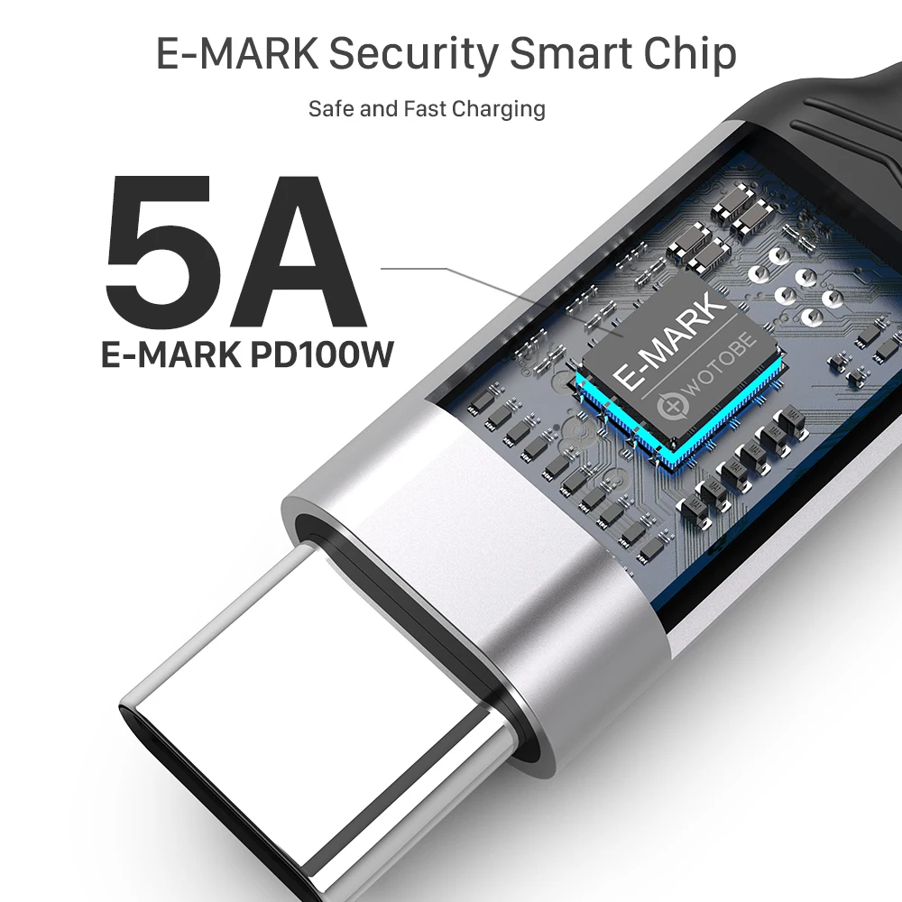 Кабель WOTOBE USB-C, 2 м, 5 А, E-MARK, PD100W, для PD 25 Вт, 45 Вт, 65 Вт, 87 Вт, 96 Вт, для ноутбуков S10, S20, Note1020, PPS, 45 Вт, адаптер питания Type-c