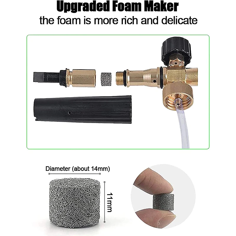 Вы можете получить очень плотную пену, как на фотографиях выше, если ваша мойка давления может создать давление 150 бар по крайней мере, и ваш шампунь для очистки концентрат шампунь.Преимущество пены ROUE:1. 100% Гарантия изготовления толстой и плотной пены для всех моек высокого давления.2. Как маленькие, так и большие коммерческие Мойки под давлением могут изготовить плотную и плотную пену с новым дизайном MJJC пенопластовая насадка.3. Возврат денег в течение 45 дней гарантирован за недоставку или дефектное качество.4. С этого момента мы предоставляем гарантию на 6 месяцев (за исключением сетчатого фильтра внутри).5. 100% послепродажное обслуживание гарантировано навсегда.Так как существует два вида адаптеров для этого бренда моек высокого давления. Пожалуйста, проверьте размер адаптера и убедитесь, что он подходит для вашей Мойки под давлением перед заказом. Мы показали изображение размера адаптера в описании продукта, поэтому мы не несем никакой ответственности за несовместимость вашего адаптера, если вы сделали неправильный заказ.