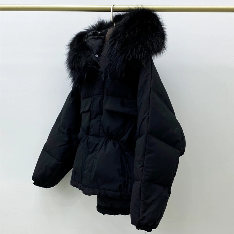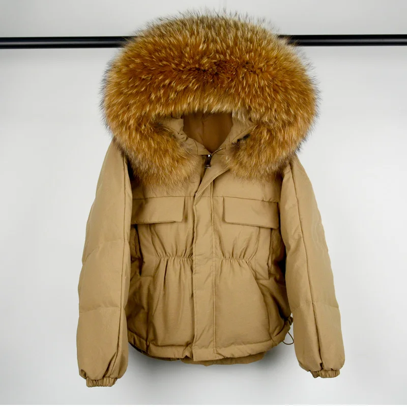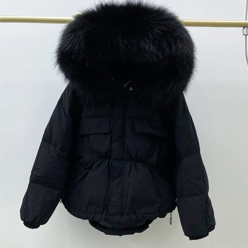 Пуховик женский Janveny, на белом утином пуху, с капюшоном из меха енота и лисы, водонепроницаемый, зимний