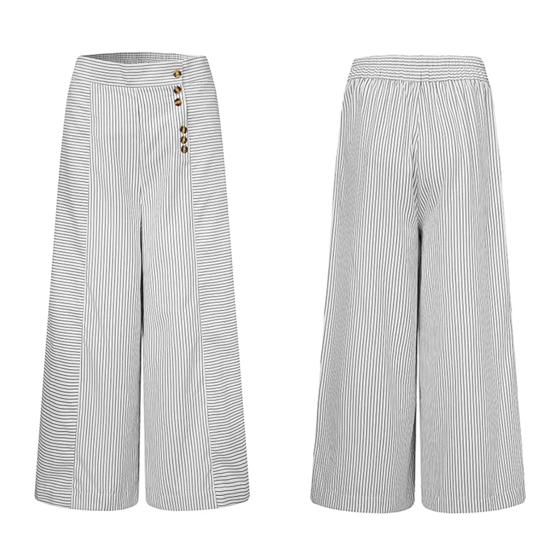 Модные полосатые брюки Celmia 2022, женские белые брюки с широкими штанинами, Осенние повседневные офисные элегантные брюки палаццо с высокой талией и карманами