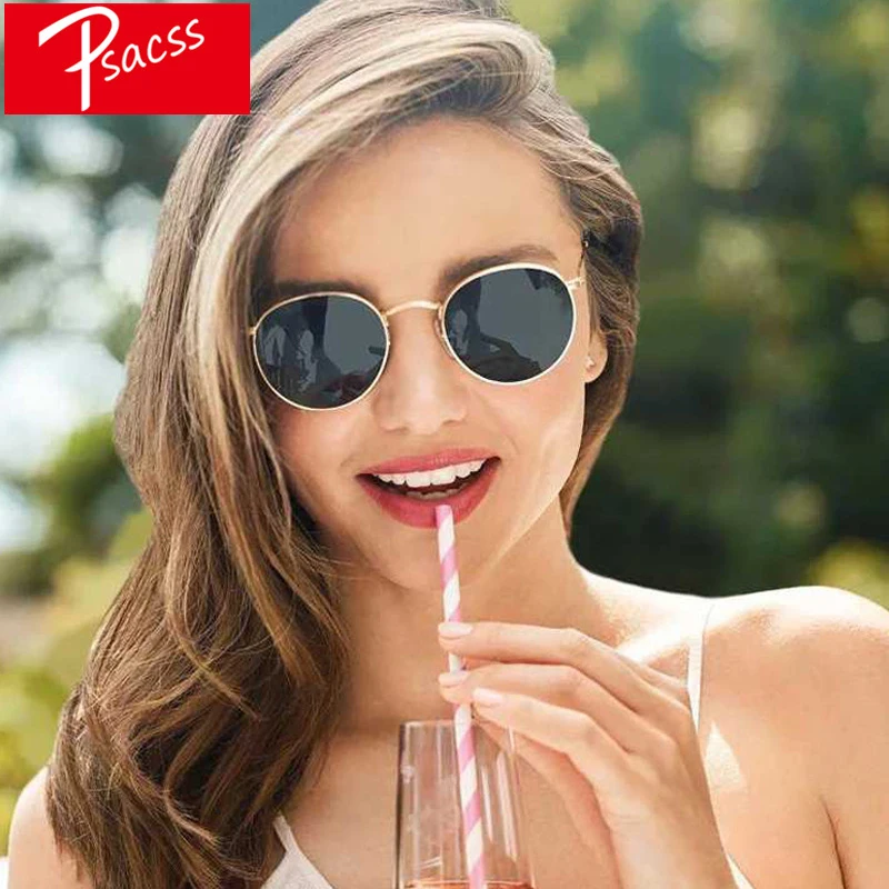 Круглые Солнцезащитные очки PSACSS 2020 Женские винтажные маленькие металлические очки Брендовые дизайнерские солнцезащитные очки для женщинмужчин солнцезащитные очки Gafas UV400