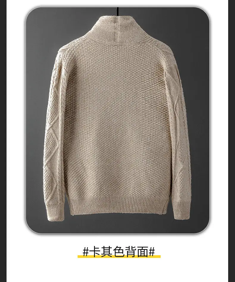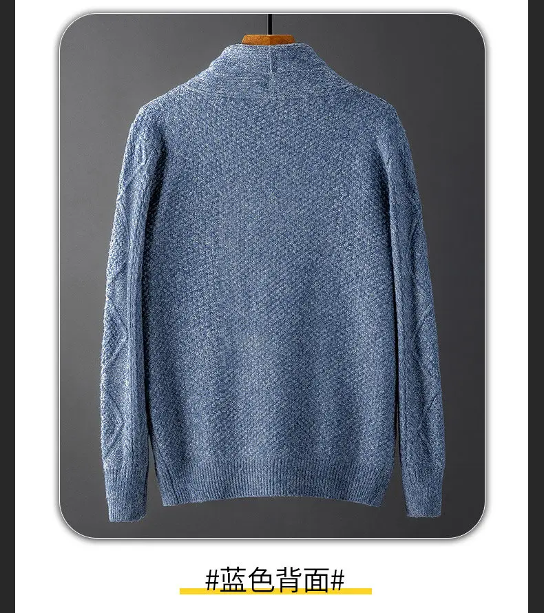 Мужской трикотажный свитер с отложным воротником, с высоким воротником