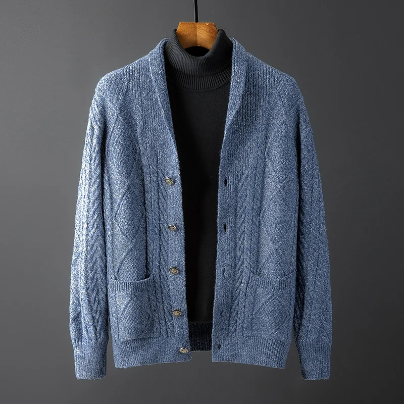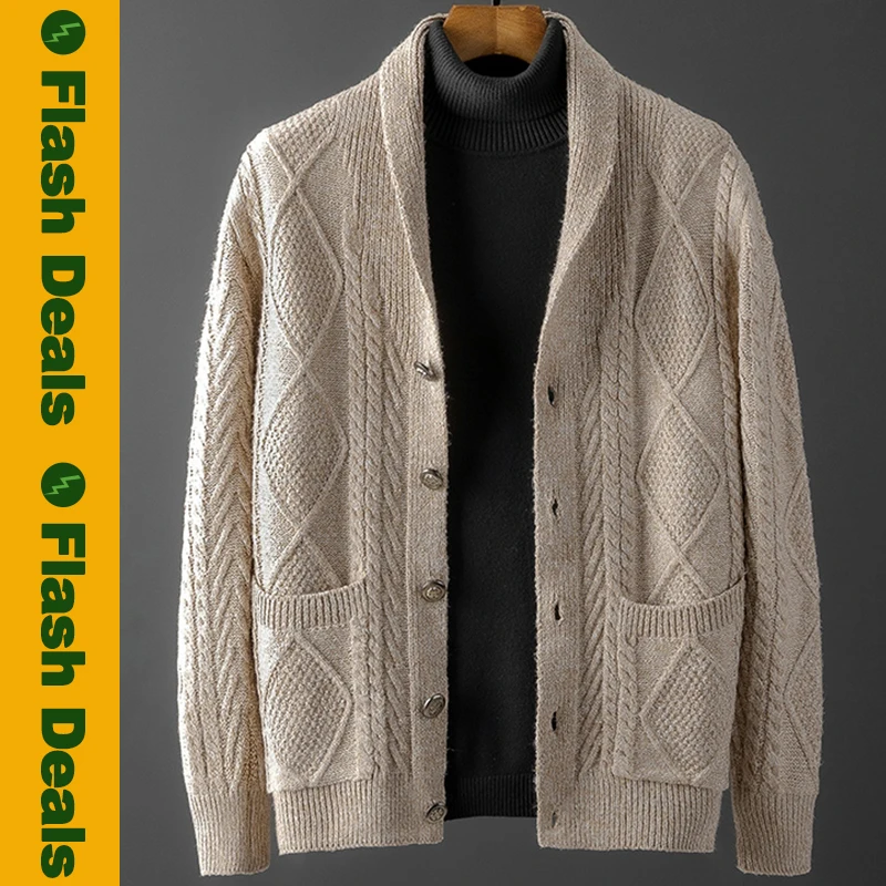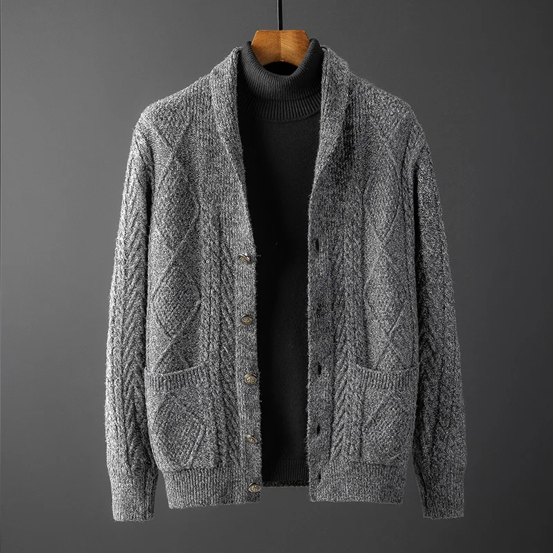 Высококачественный плотный шерстяной свитер, пальто, мужской свитер, куртка, мужской свитер, пальто, трикотажная одежда в английском стиле на осень и зиму, мужской кардиган для женщин