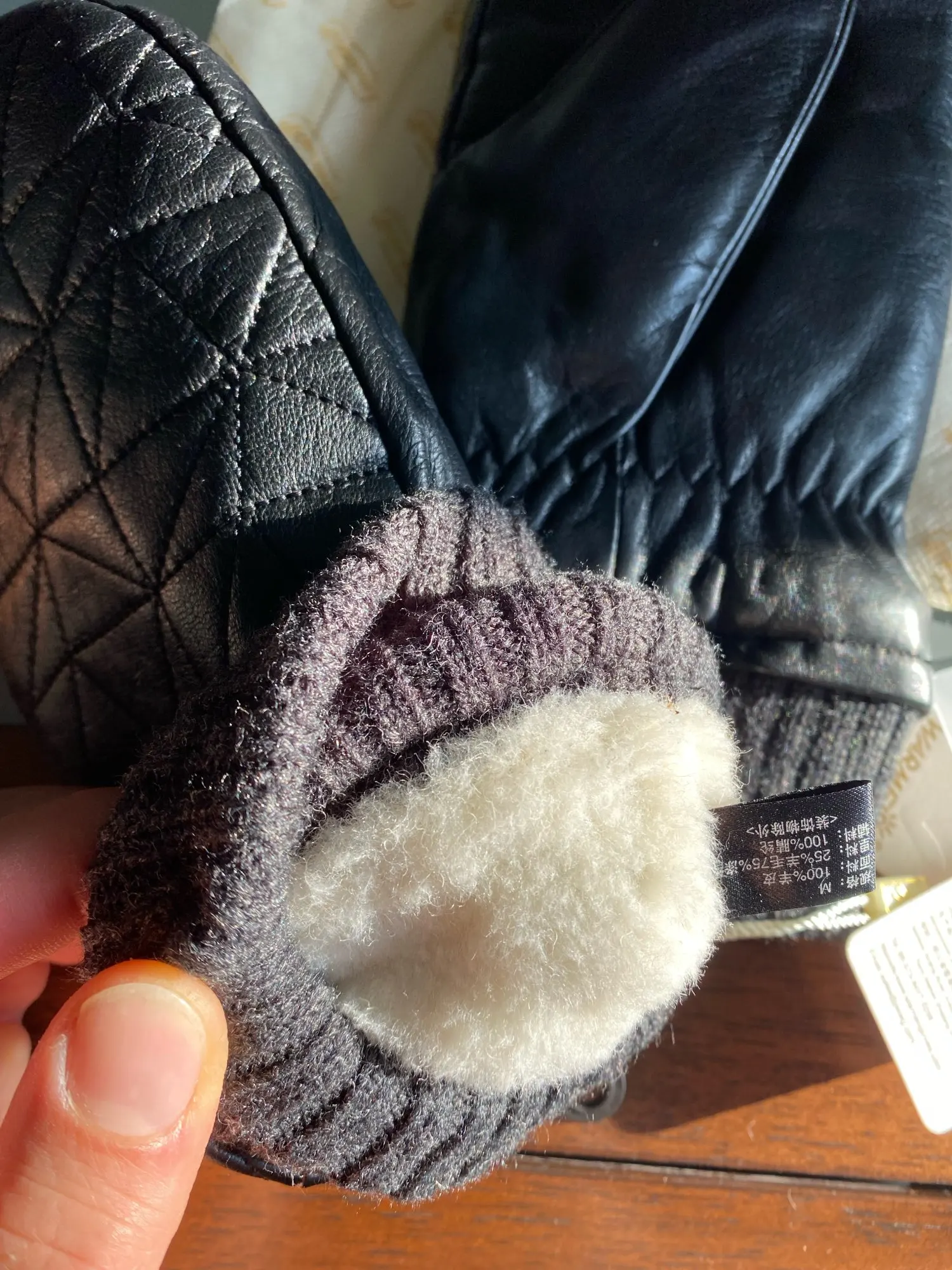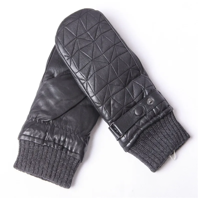 Варежки мужские из овечьей кожи, зимние, утепленные, с бархатной подкладкой, без пальцев, M033NY