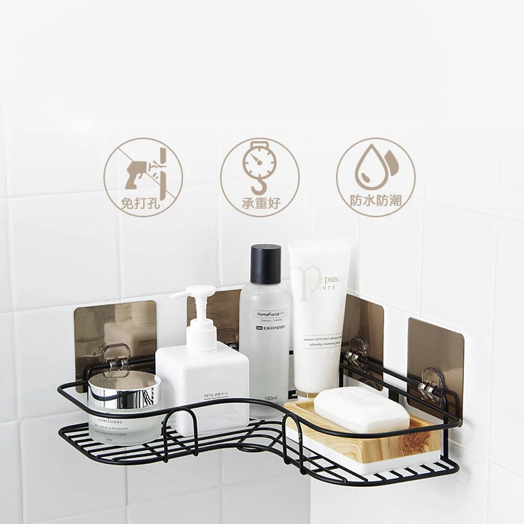 Настенное крепление, железная полка без сверления для ванной, держатель для шампуня с присоской и крючком для душевой, инструмент для хранения, 2 шт.