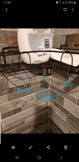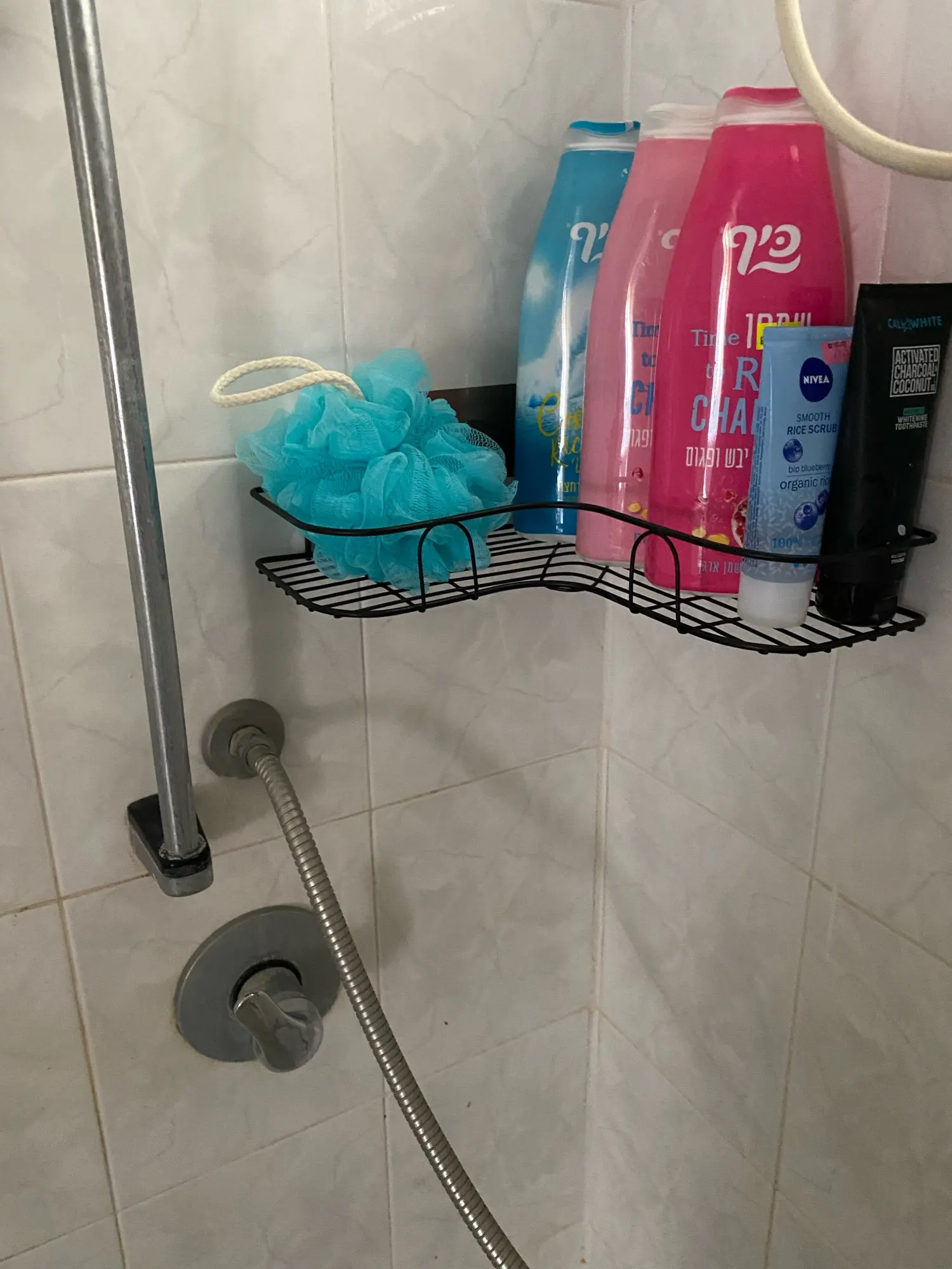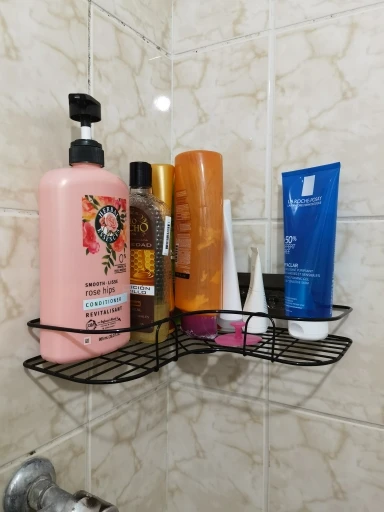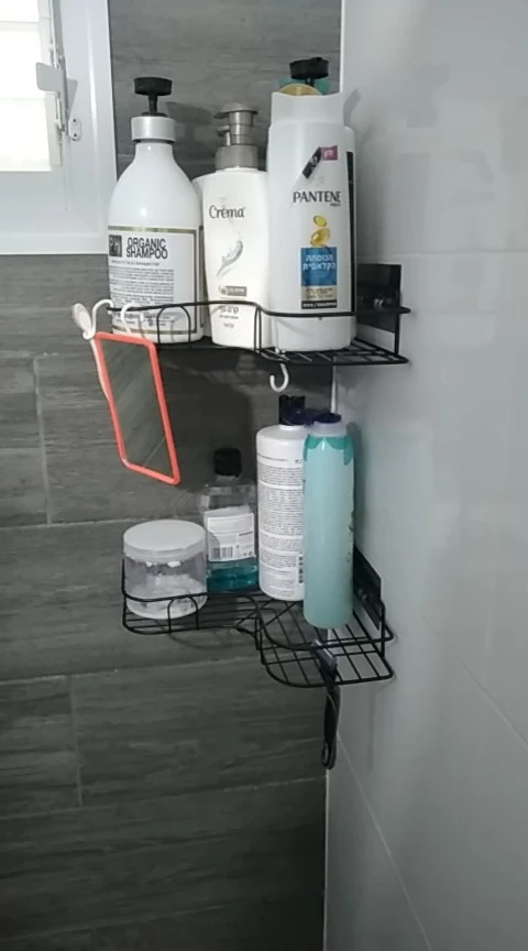 Так же, как на фото. Больше, чем я ожидал. Мне очень нравится. Я удостоверился, чтобы хорошо высушить стену и приклеить крючки к одному плитке (а не к суставам). Я оставил это все. Ночью из-за сомнений, и я загрузил это утром. После двух душей он все еще прилипает. Это выглядит хорошо.