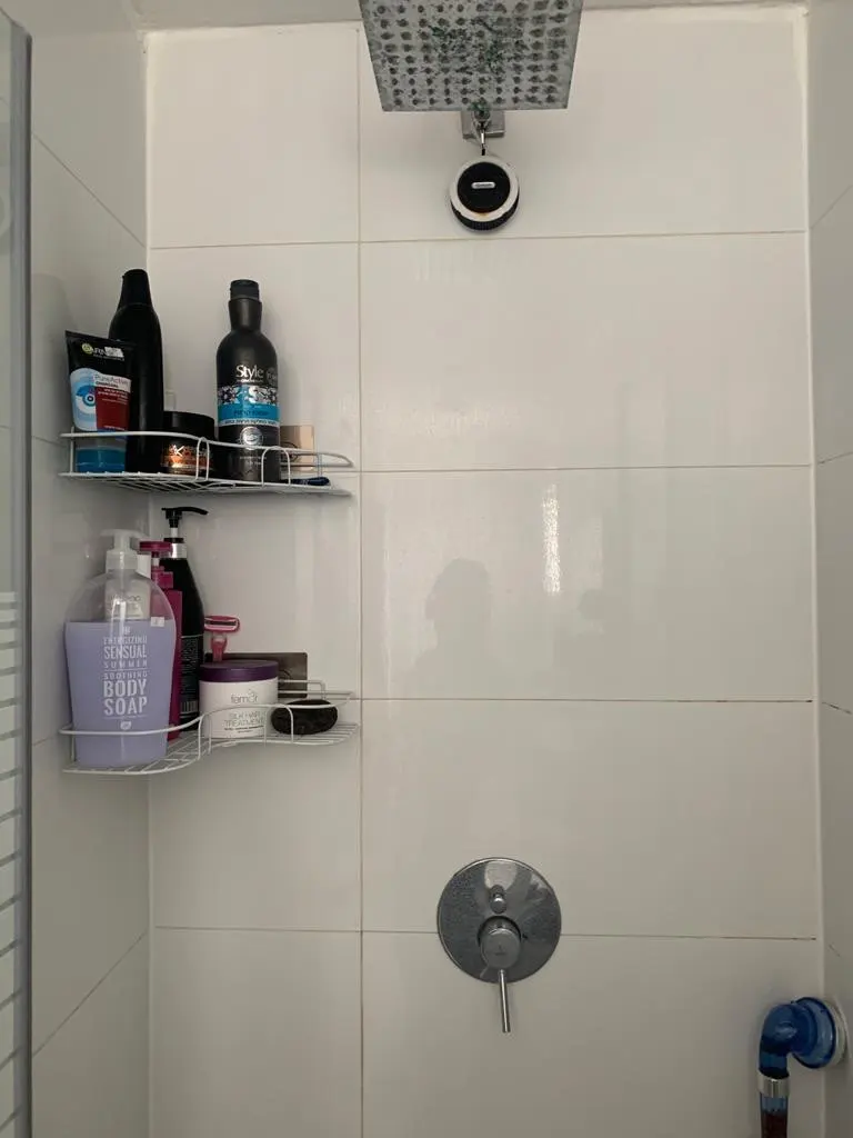 Быстрая доставка в Чили (10 дней). Продукт отлично подходит для душа и клеевая лента отличная, очень сильный клей для него держит полку в своих местах.