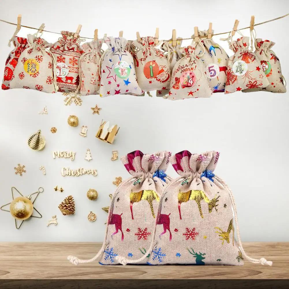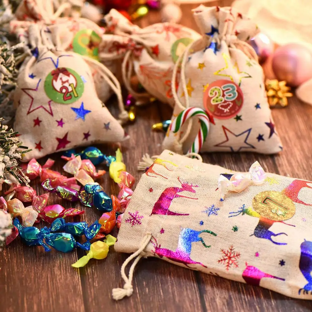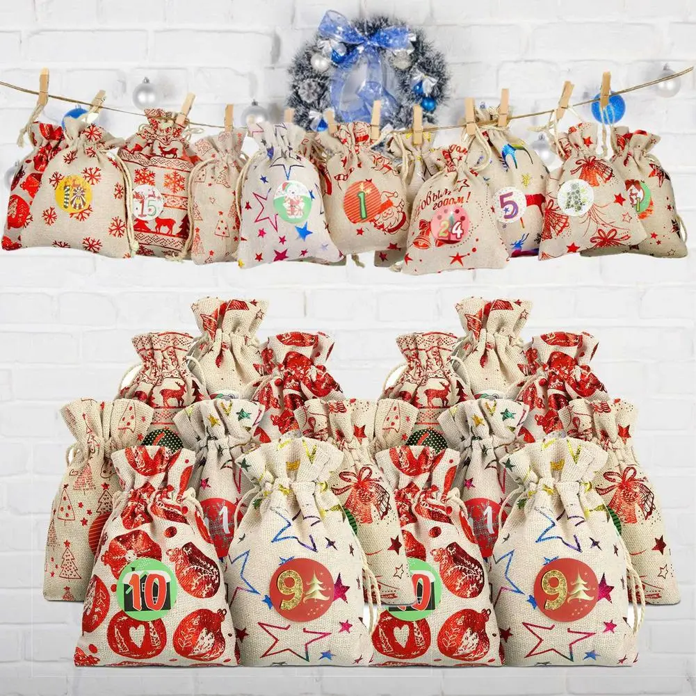 Рождественская сумка конфет 1-24 Advent Calendar Bundle, Подарочная сумка из хлопка и льна, рождественские украшения для дома, вечерние подарки