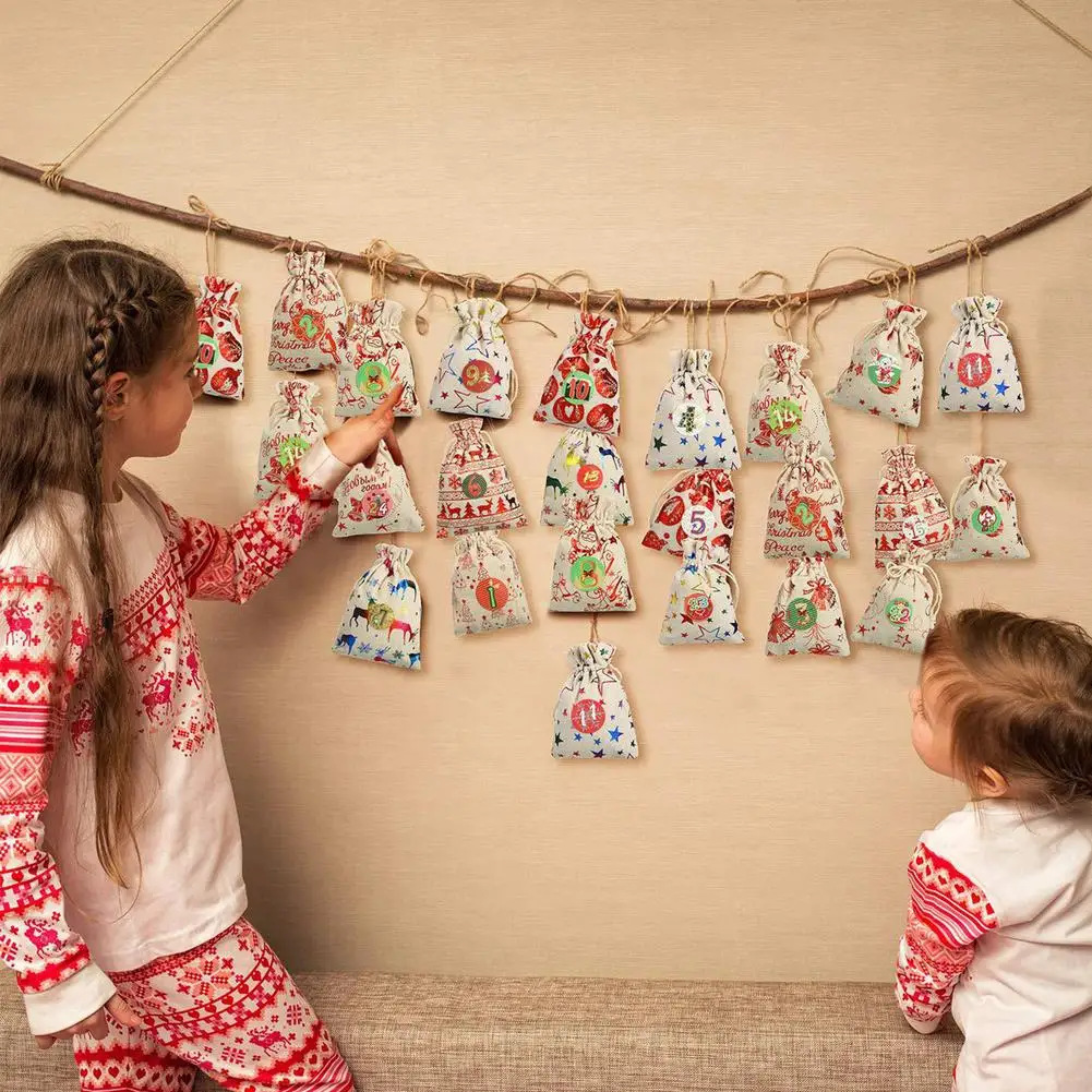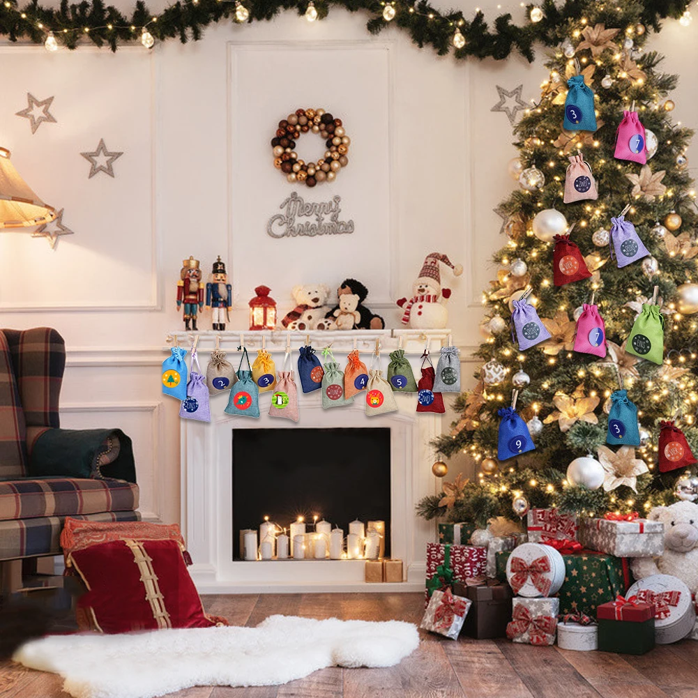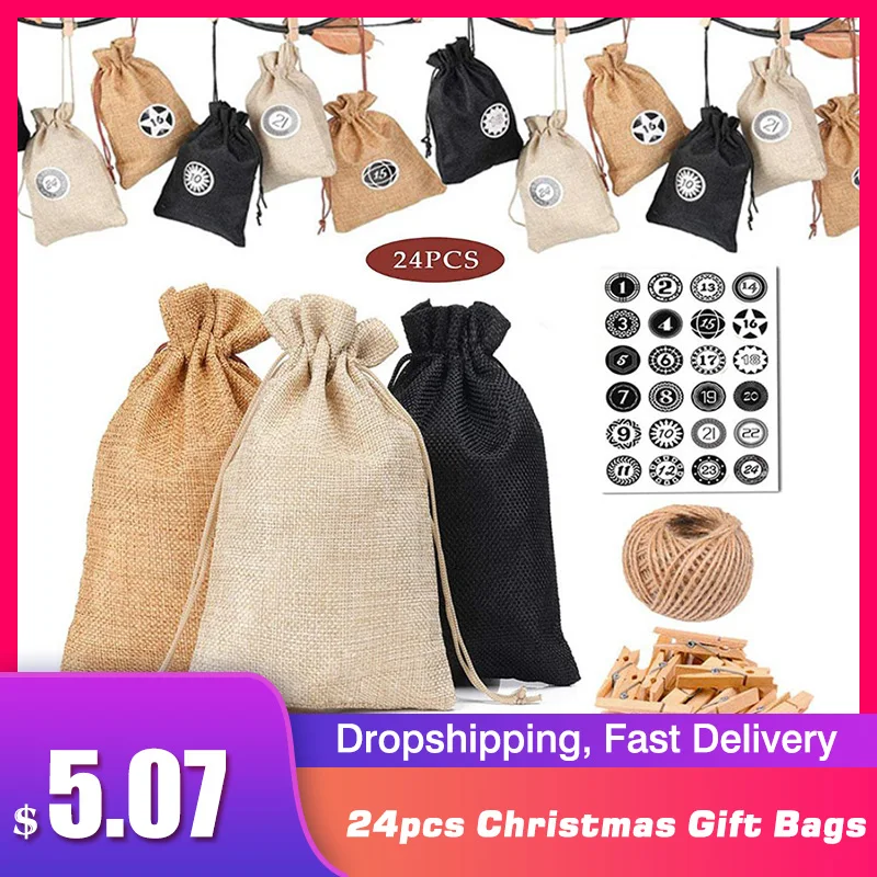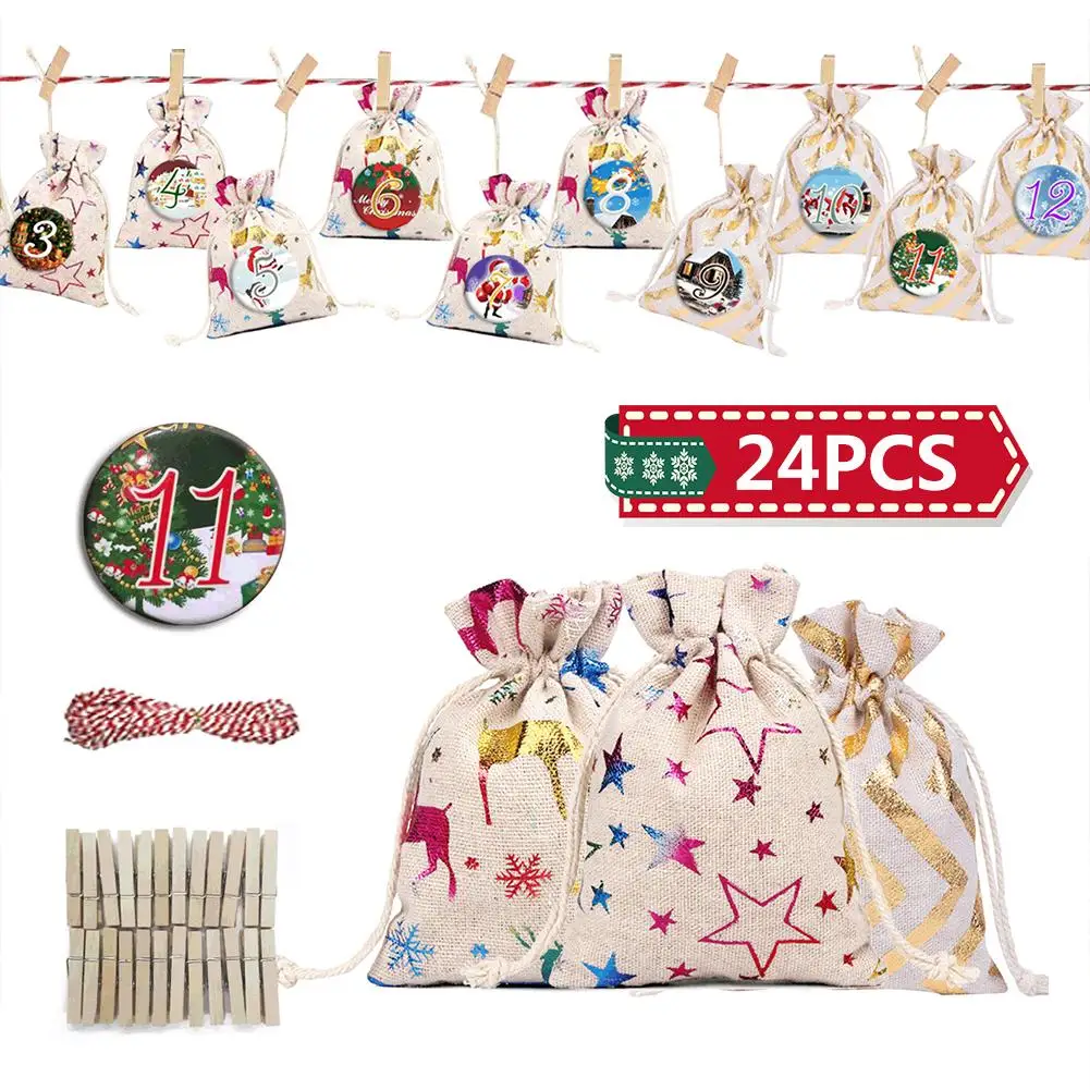 Рождественская сумка конфет 1-24 Advent Calendar Bundle, Подарочная сумка из хлопка и льна, рождественские украшения для дома, вечерние подарки