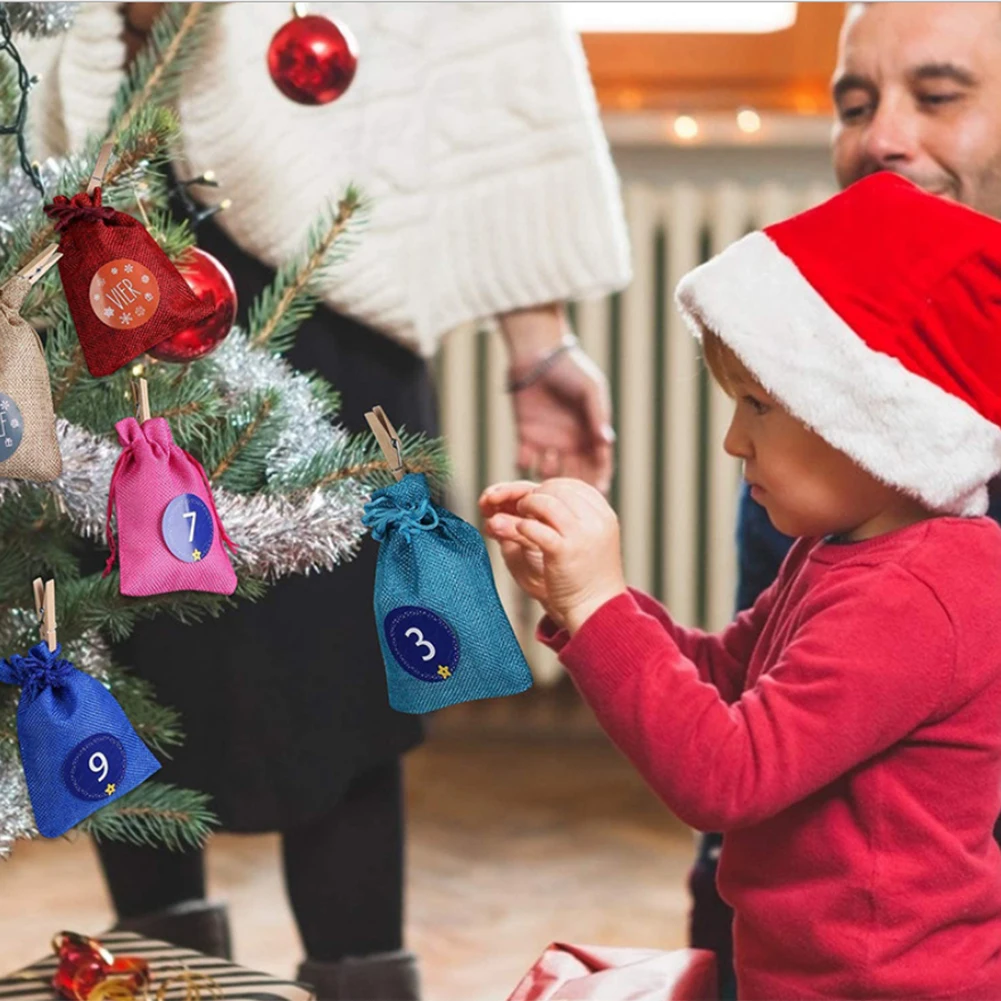 24 шт рождественские DIY Advent украшение для календаря 1-24 цифры сумка Рождественский подарок сумки календарь обратный отсчет мешок конфеты пакеты для хранения