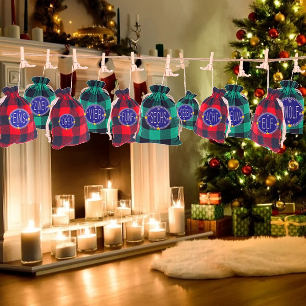 24 шт. Рождественский календарь ремесло Хлопковая Сумка для белья Адвент календарь ткань мешок для конфет Рождество Подарочный Пакет Рождественский календарь набор для рукоделия
