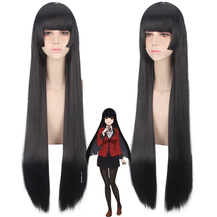 100 см Kakegurui Yumeko Jabami Косплей парики черные прямые термостойкие синтетические волосы Perucas Косплей парик