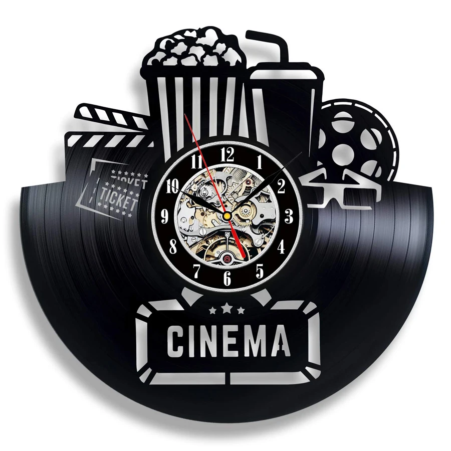 Настенные часы с виниловой пластиной для кинотеатра, современный дизайн, кинорежиссер, граммофон, 3D наклейки, виниловые часы, настенные часы, домашний декор
