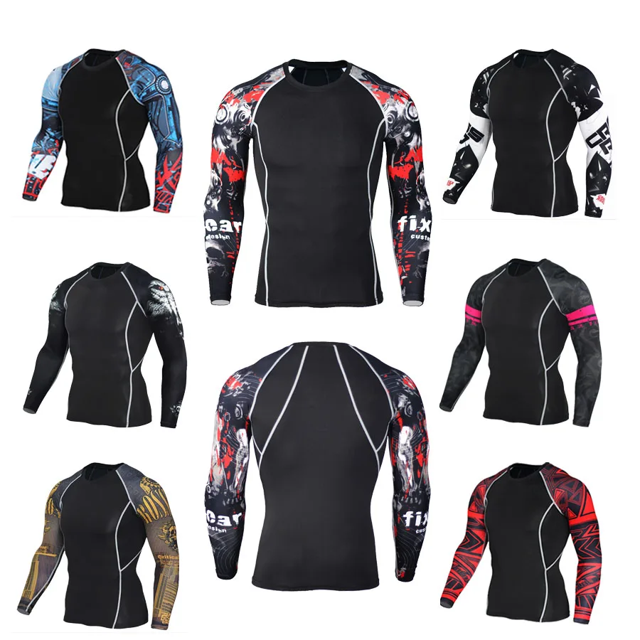 Мужская компрессионная футболка, Спортивная футболка для бега, фитнеса, дышащая спортивная одежда с длинным рукавом, Рашгард, спортивная одежда для велоспорта
