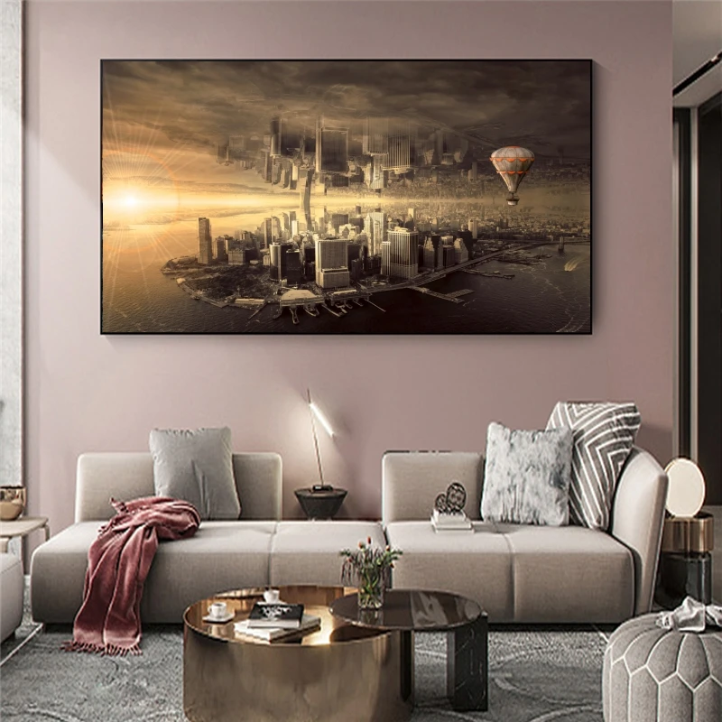 Современный городской Отражение Пейзаж холст художественные плакаты и принты красивый закат холст Картины для стены дома Cuadros картины