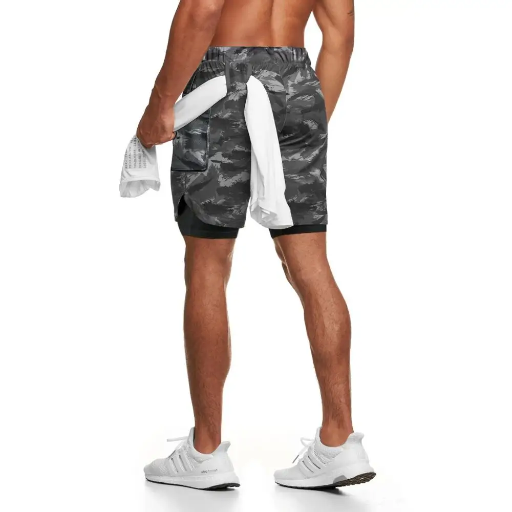 2021 с камуфляжным принтом, шорты для бега, Для мужчин двухслойные ...