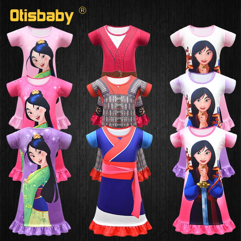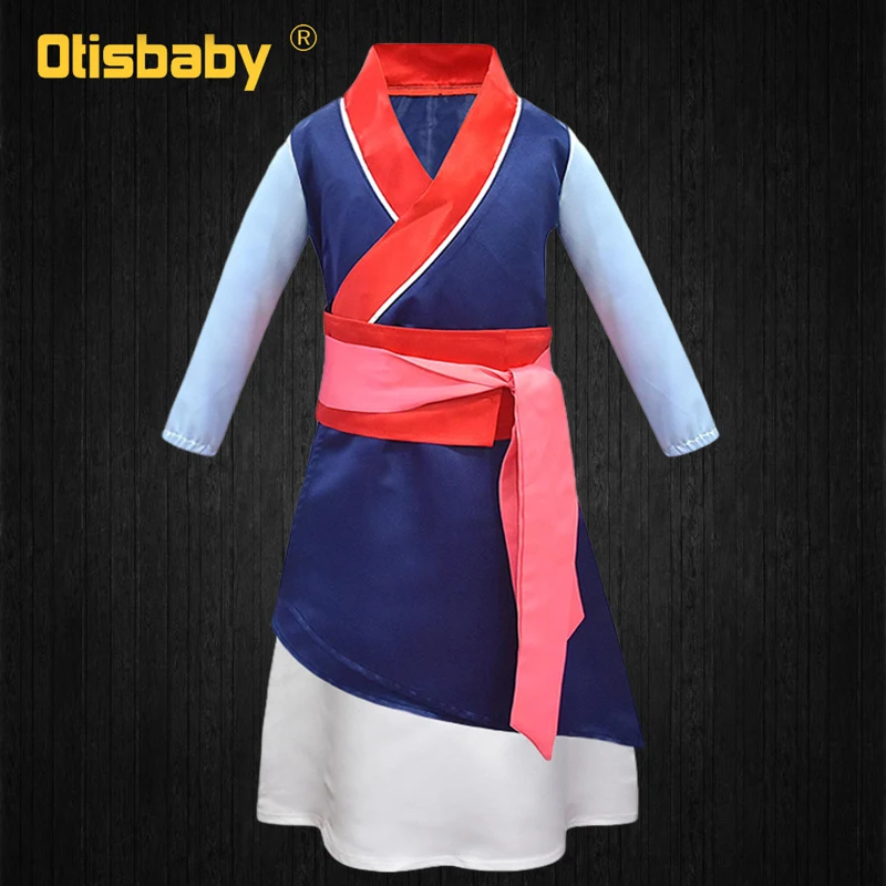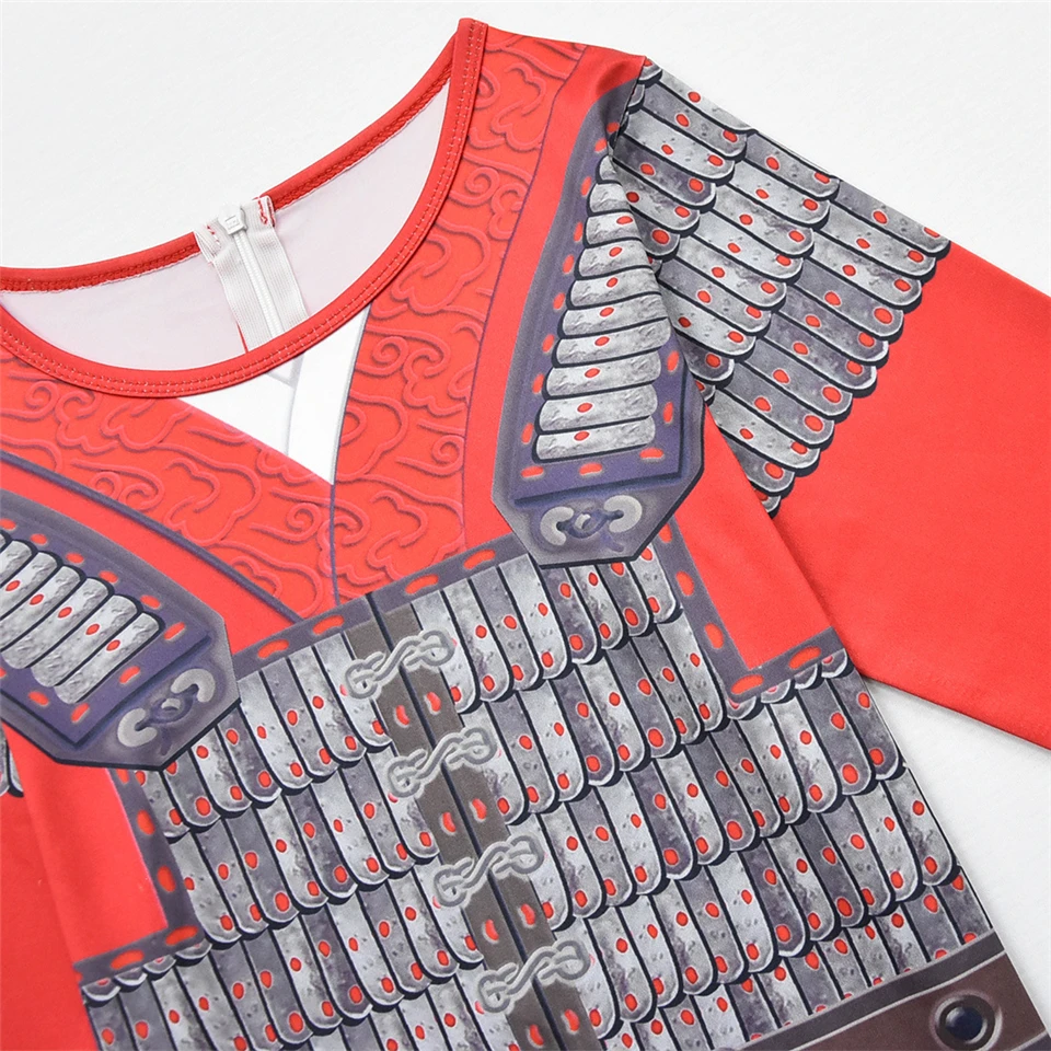 2020 платье Мулан с оборками для девочек на Хеллоуин, детский Карнавальный костюм для девочек с мультипликационным принтом Мулан табард, ретро Китайский традиционный костюм ханьфу Мулан