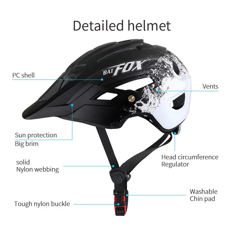 Шлем велосипедный Batfox для мужчин и женщин, спортивный защитный шлем для езды на горном велосипеде, легкая форма