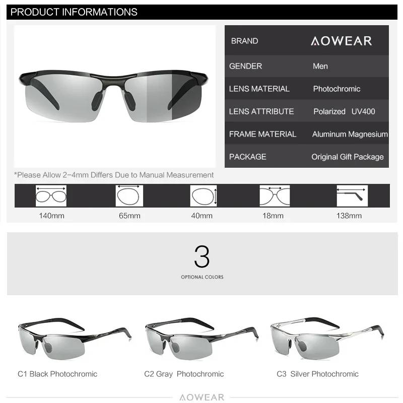 Солнцезащитные очки AOWEAR мужские, фотохромные, поляризационные, дневное и ночное вождение, очки-хамелеон, алюминиево-магниевый спортивный стиль, солнцезащитные очки