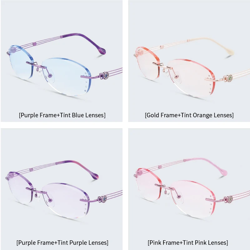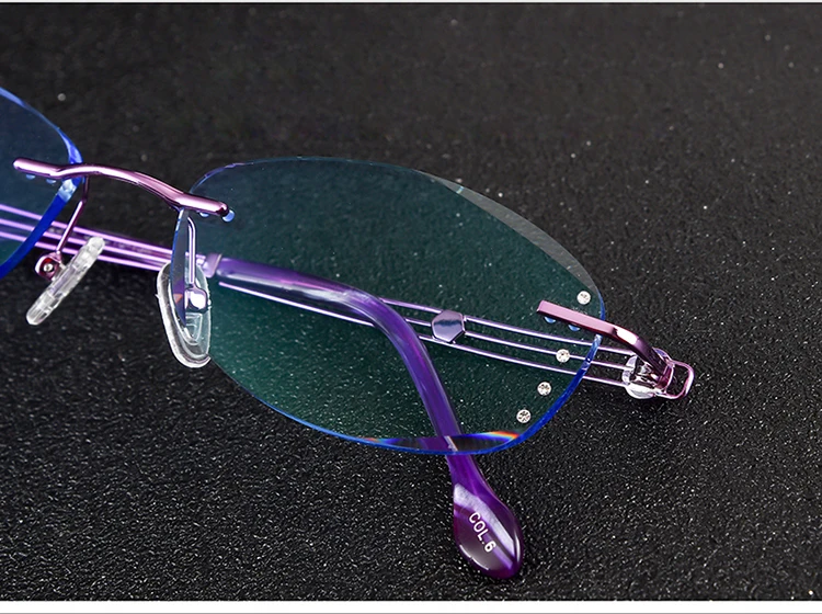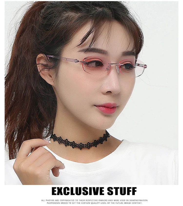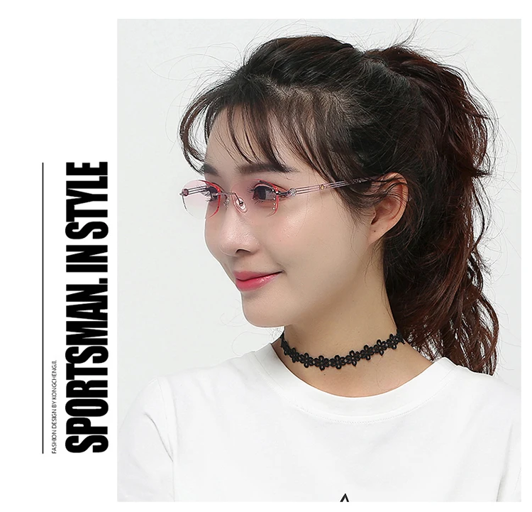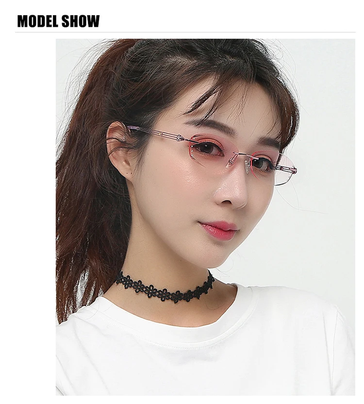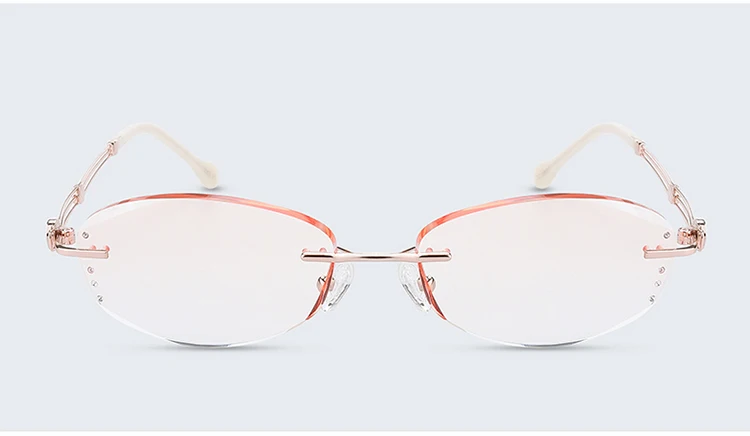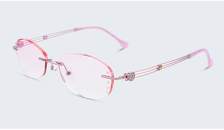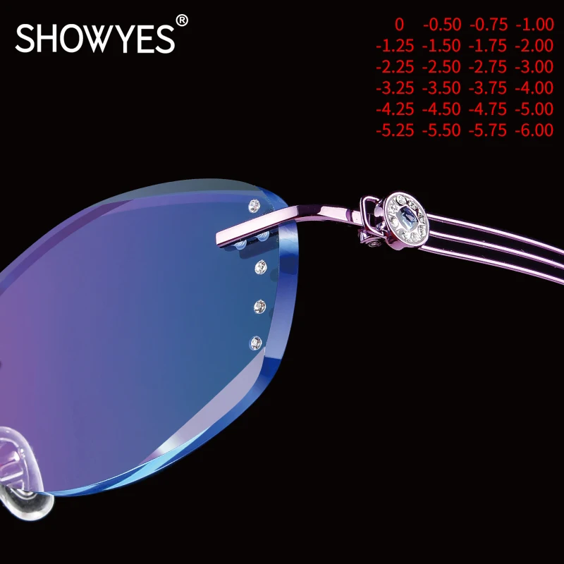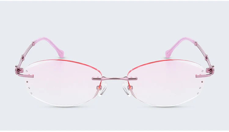 Антибликовыми свойствами светильник очки без оправы Для женщин близорукости фильтр компьютерные очки градиент розового цвета с Стразы Безрамное глаз очки
