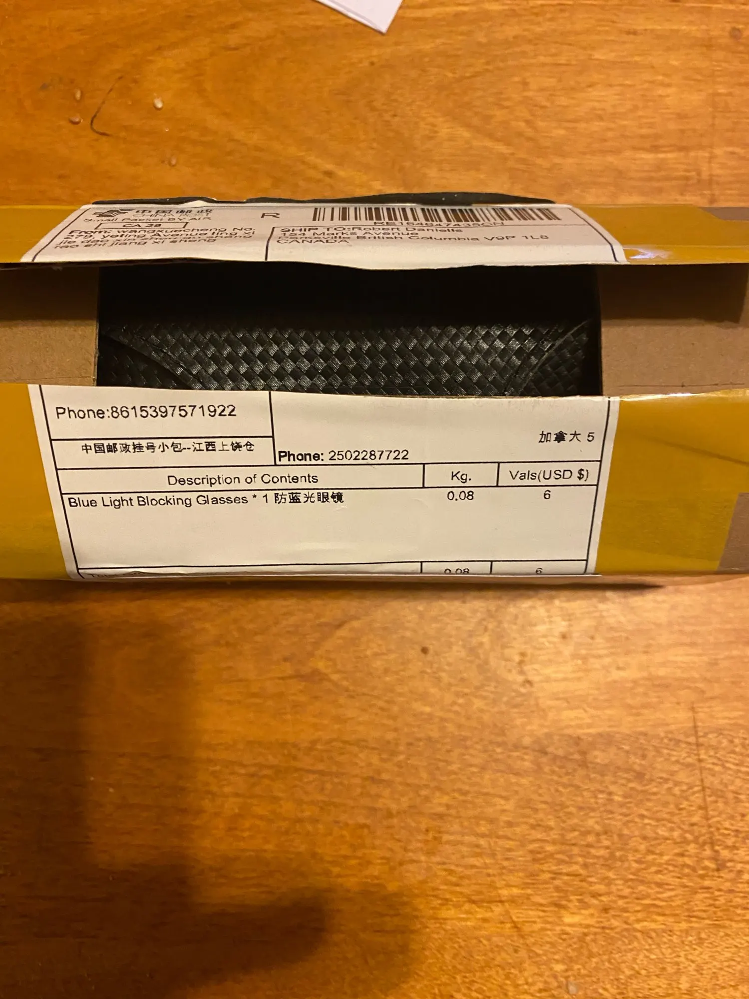 Страна: CA Frame Color: C2 Eye Prescription: Myopia -1.50 Доставка: China Post Registered Air Mail 15.01.2021