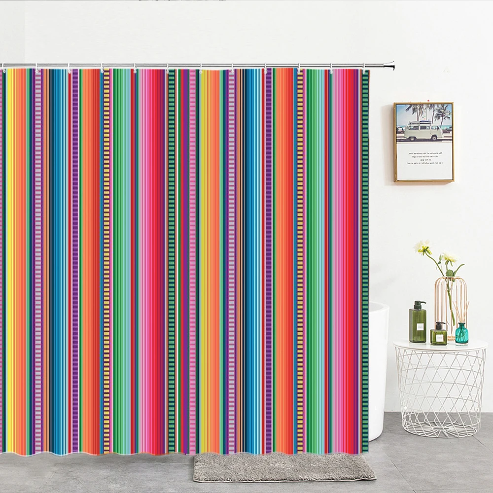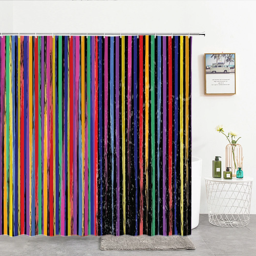 Красочная занавеска для душа с полосками Водонепроницаемая занавеска для ванной из полиэстера ткань с крючками украшение для ванной