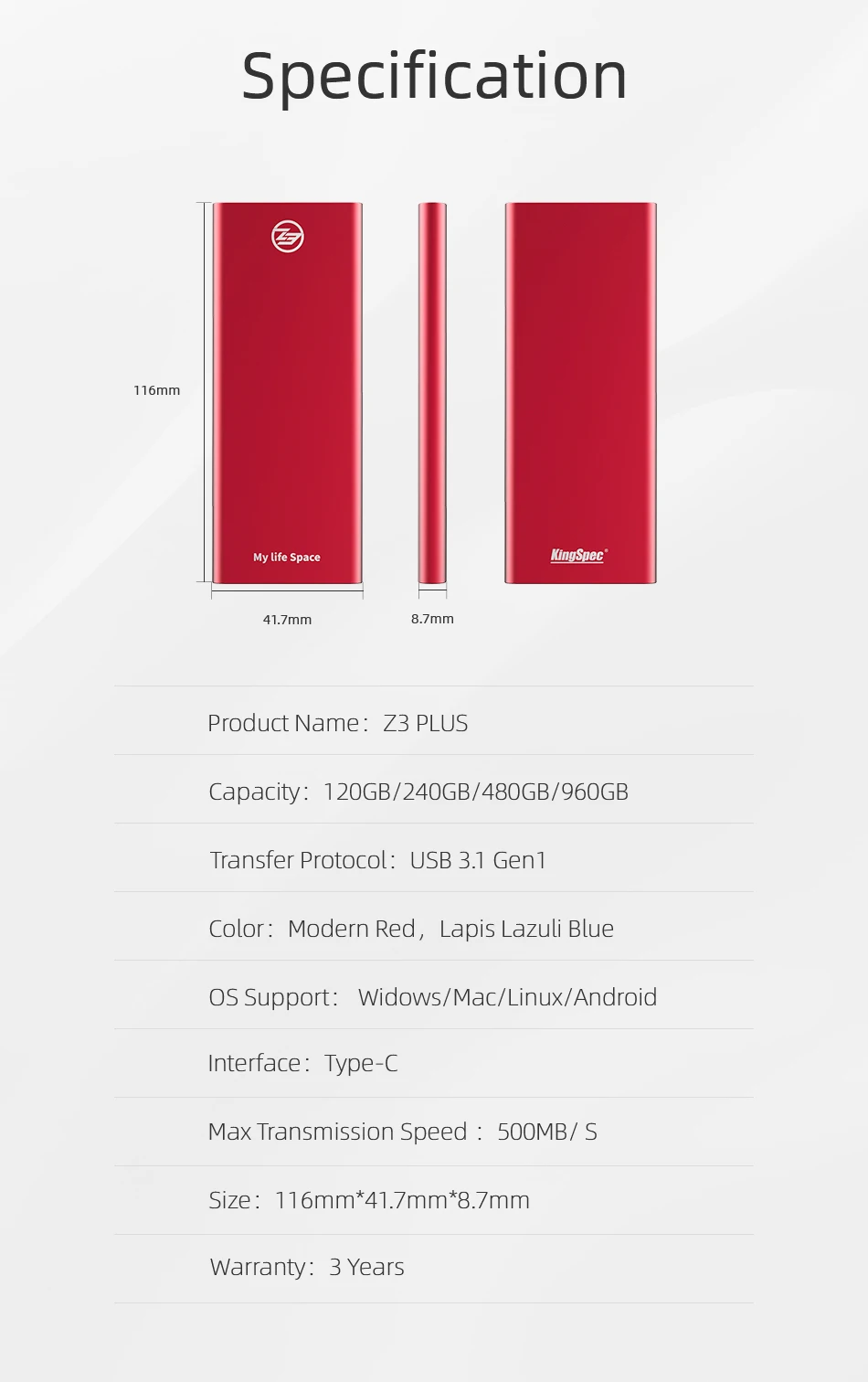 Внешний жесткий диск KingSpec 120 ГБ, портативный 240 ГБ, внешний ssd 480 ГБ, внешний жесткий диск для компьютера, ноутбука, настольного ПК