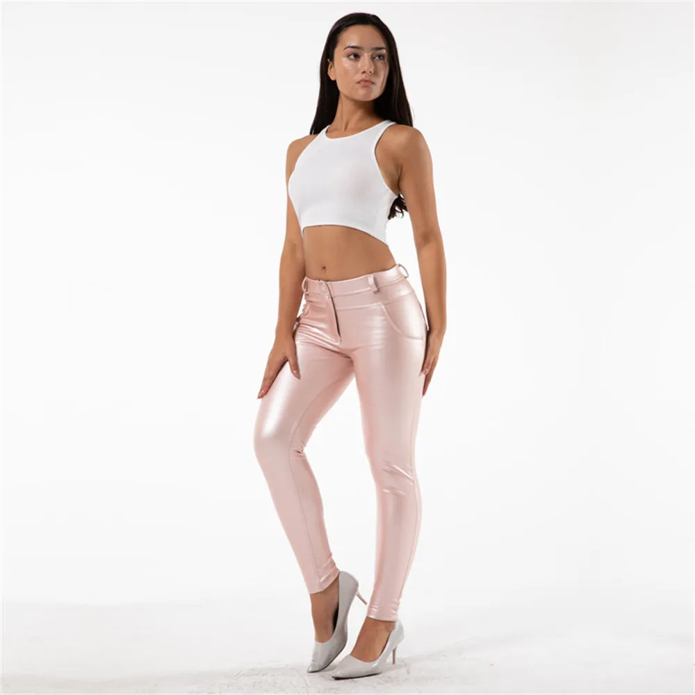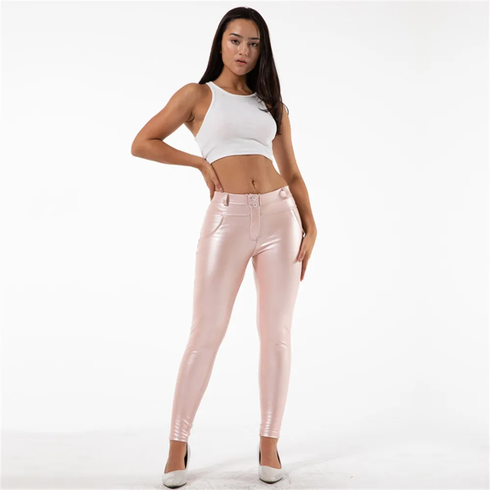 Леггинсы Melody розовые из лакированной искусственной кожи, спортивные штаны, Женское боди-шейпер, Термолеггинсы с флисовой подкладкой
