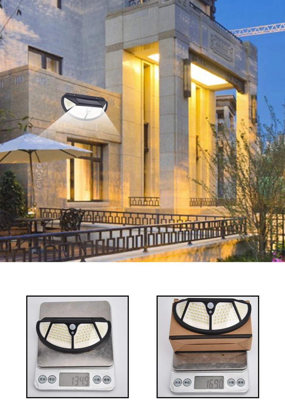 Светильник на солнечной батарее, наружный светодиодный настенный светильник, 3 режима, датчик движения, уличсветильник, SMD2835, 102, встроенный аккумулятор, солнечный светильник, водонепроницаемый
