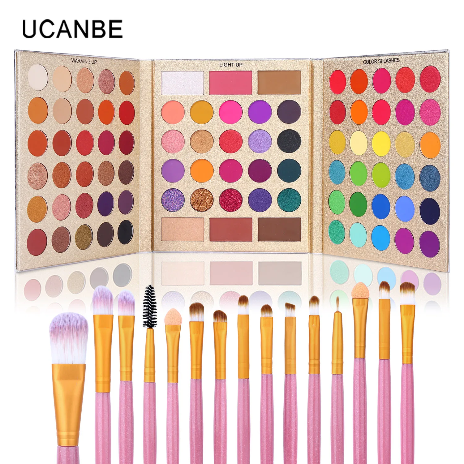 Палетка теней для век Ucanbe Pretty, с 15 кистями для макияжа, матовые, мерцающие, водостойкие, все в одном