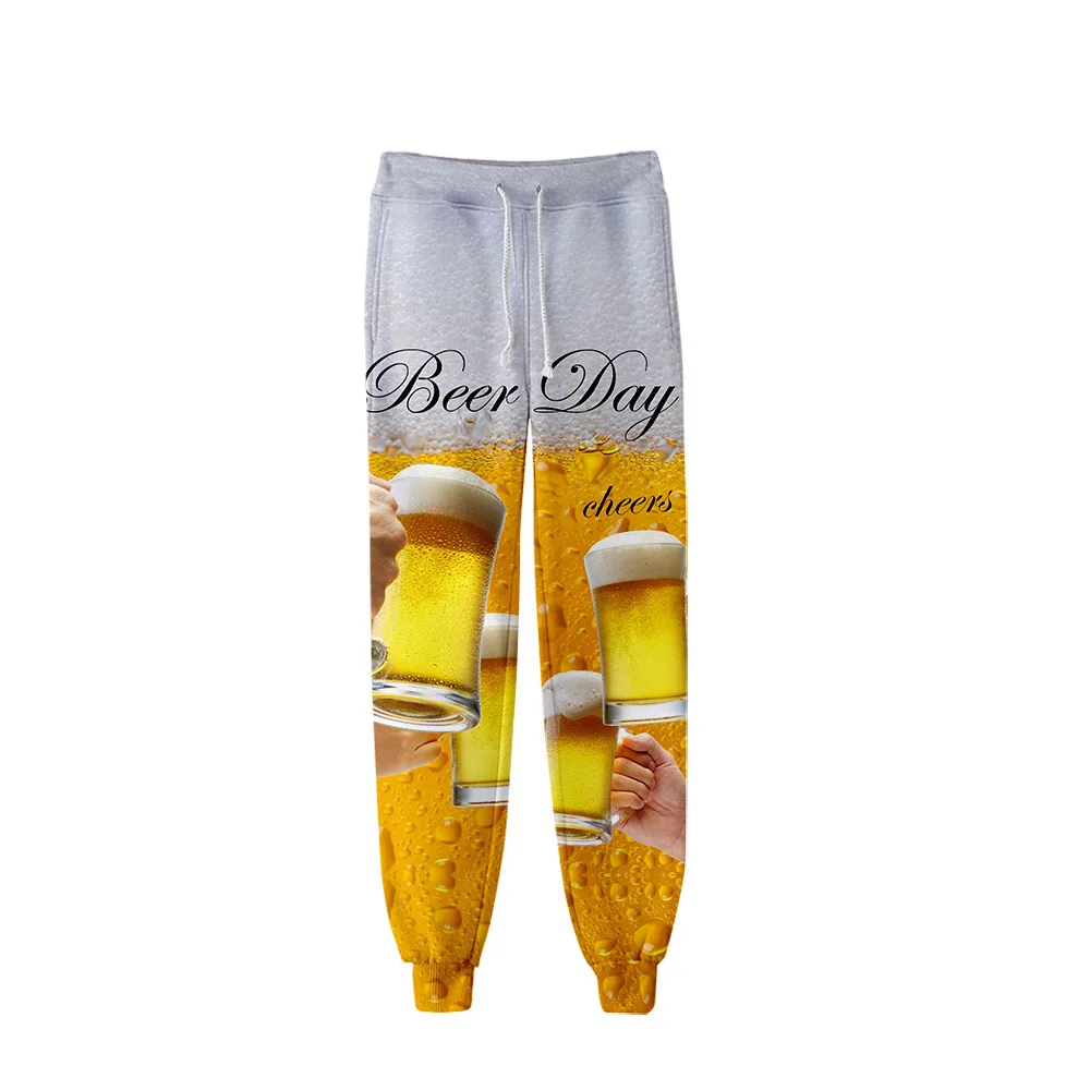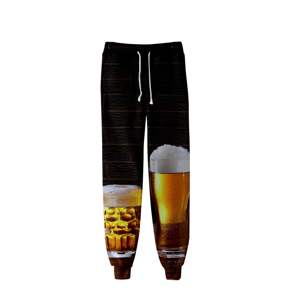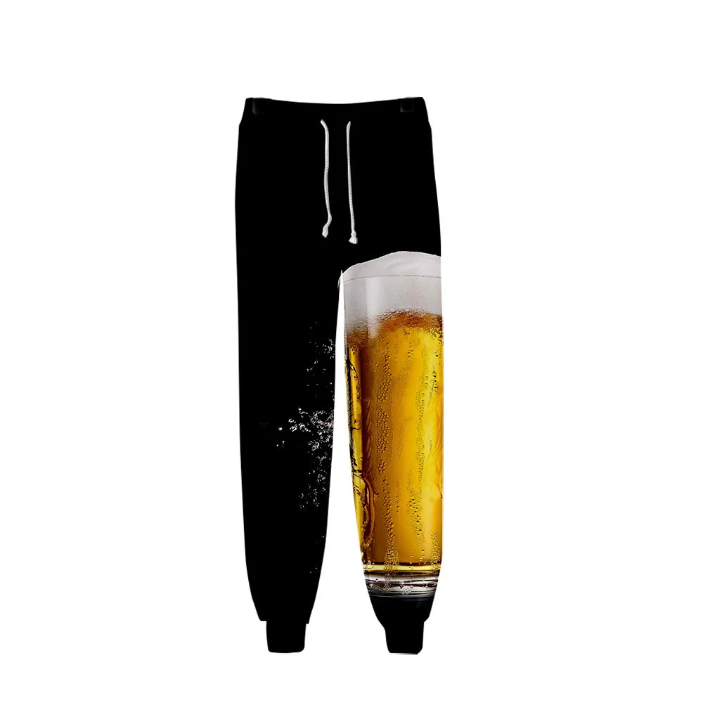 Брюки спортивные мужскиеженские с 3D принтом пива, модные повседневные джоггеры, уличная одежда в стиле хип-хоп, облегающие теплые штаны в стиле K-POP
