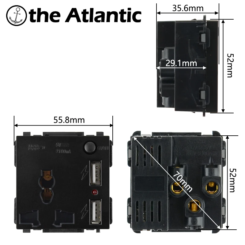 Материал панели: пластик Номинальное напряжение: 110-250 В Номинальный ток: 13 а Два порта USB: AC 110V-250V DC 5V-MA В том числе: Только один модуль