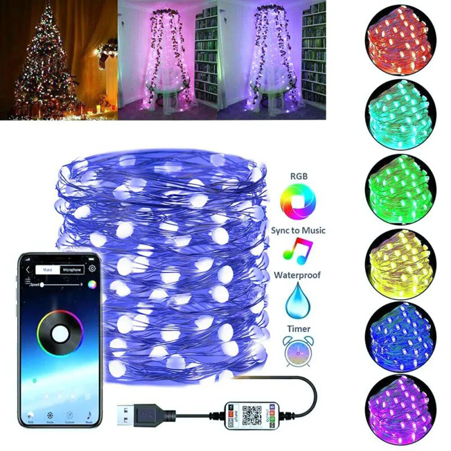 Thrisdar 51020 м USB светодиодный строка светильник приложение с синхронизацией по Bluetooth и Управление Медный провод Светильник s Елочное украшение сказочные светильник s