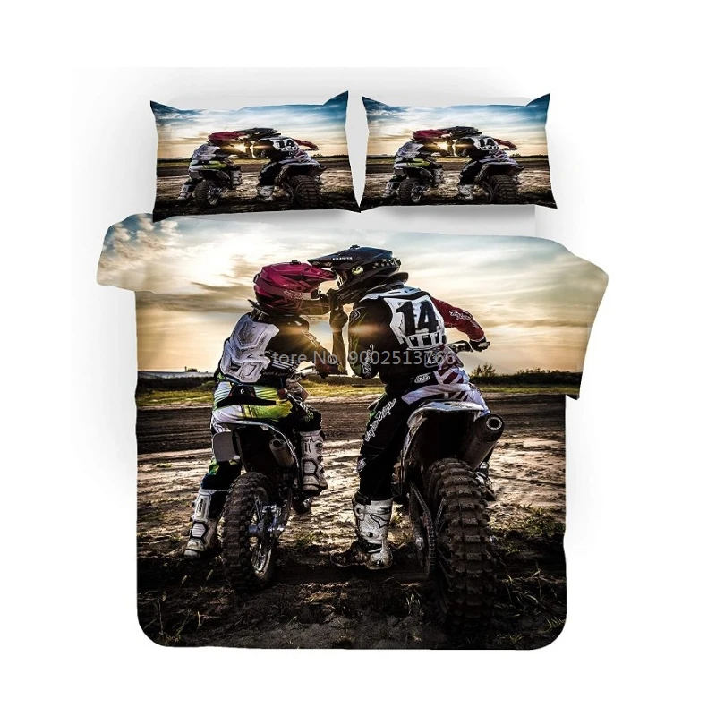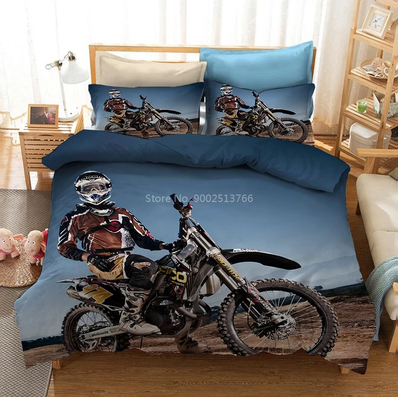 Мотокроссов мотоциклов 3D печатных постельное белье близнец полный Queen Комплект постельного белья королевского размера постельное белье Домашний текстиль для взрослых мальчиков