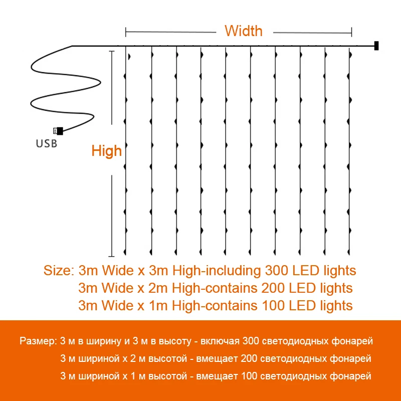 Размер: ширина: 3 м * Высота: 3 м с 300 светодиодами