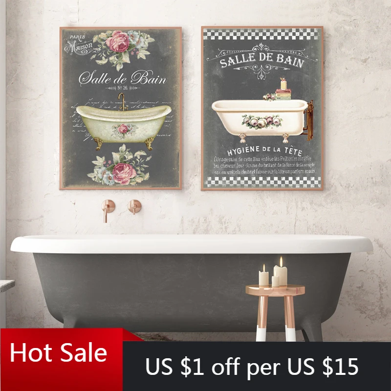 Винтажный постер для украшения ванной комнаты во французском стиле,...