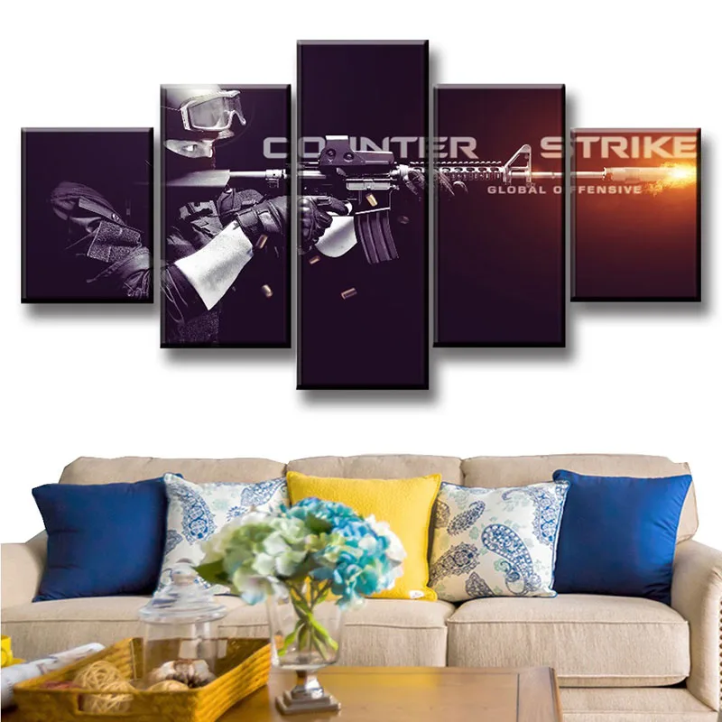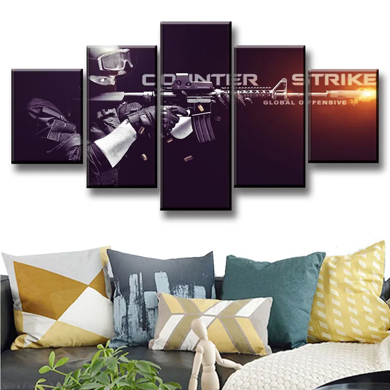Модульный плакат с игрой Counter-Strike Global нападения, 5 шт., искусство, декор для домашней комнаты, холст, картина, каркас, дизайн для подарка