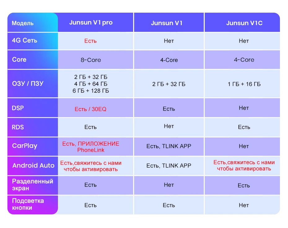 > Junsun V1 для Skoda Yeti 5L 2009-2014 функция> Основные функции: Android 10,0 + 10 дюймов IPS экран + Quad Core 1,2 ГГц (восемь ядер 1,8 ГГц Dual core опция) + DDR3 1 ГБ флэш-памяти (2 ГБ/4 ГБ/6 Гб опционально) + 16 Гб памяти (32 ГБ/64 Гб/128 Гб опционально) + WIFI (сеть 4G опционально) + зеркальная связь + управление рулевым колесом + RDS/DSP (опционально)> Специальные функции:1. PIN-PIN:Junsun радиокабель питания-pin, прост в установке;2. Встроенный Carplay/ Android Auto: Поддержка версии V1/V1Pro, просто используйте кабель телефона, подключите его, стабильный и простой в использовании;3. Поддержка подголовника: только поддержка версии Junsun V1;Дополнительные аксессуары> Голосовое управление AI: Просто скажите слово команды Управляйте радио без рук, сделайте диск более безопасным> ADAS DVR камера, мониторинг давления в шинах, OBD2, внешний микрофон, RCA кабель;