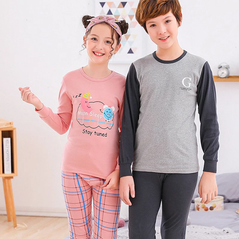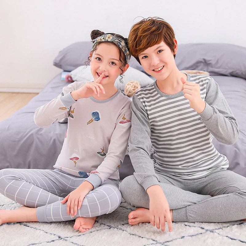 Одежда для сна для мальчиков и девочек, одежда для подростков, осен...