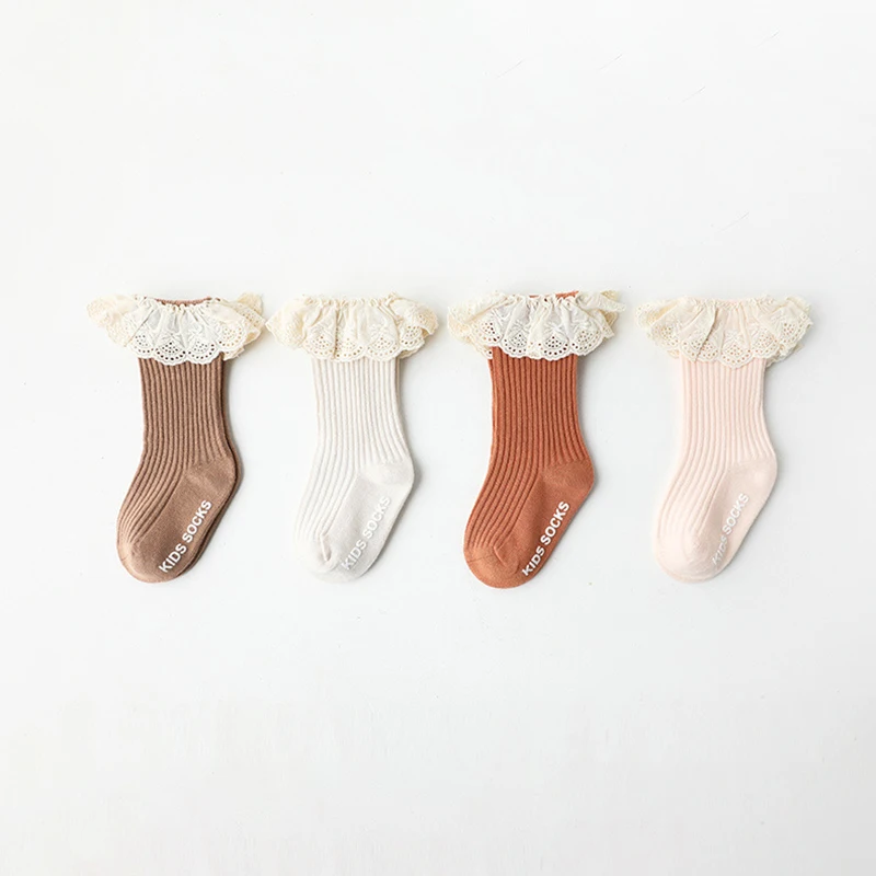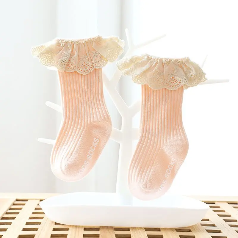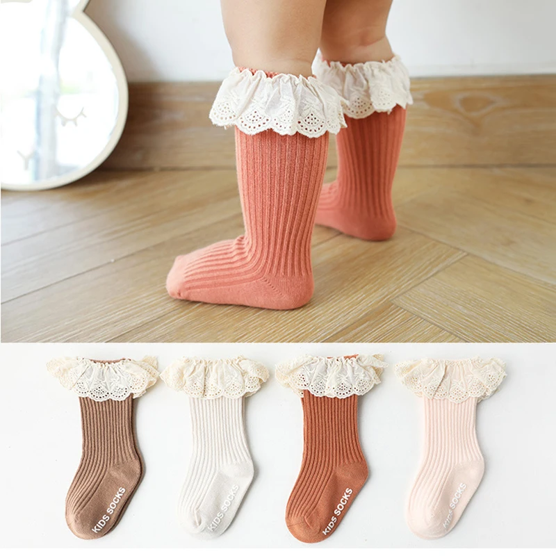 Носки для новорожденных девочек 0-3 лет, кружевные гольфы, длинные мягкие хлопковые, носки для младенцев