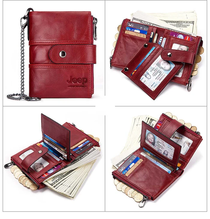 Бумажники мужские из воловьей кожи, короткие Дизайнерские клатчи с цепочкой и монетницей Крейзи Хорс, с Rfid