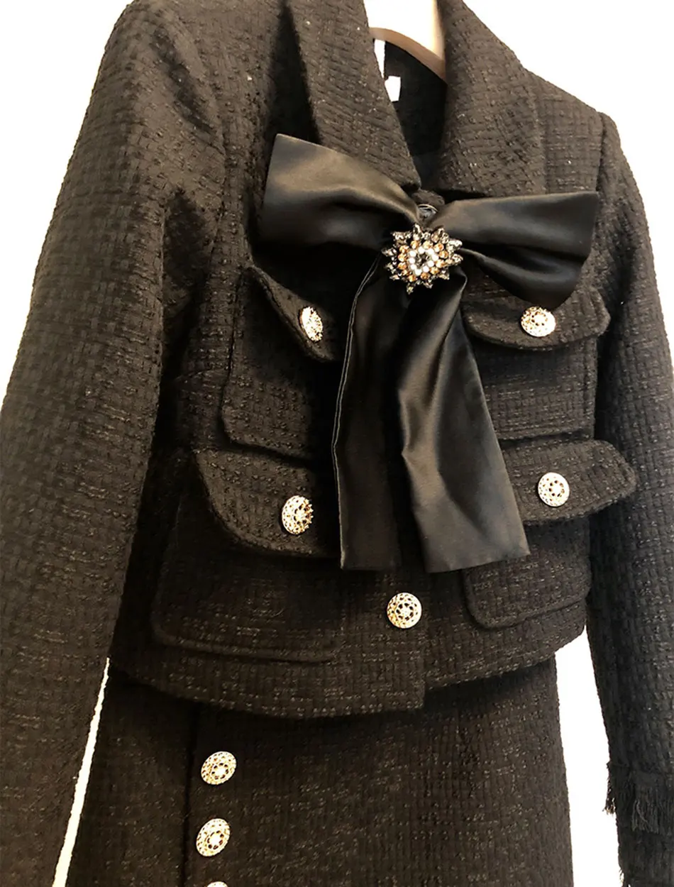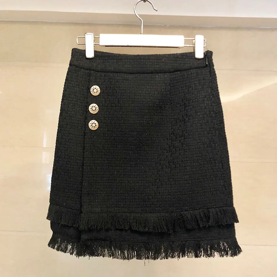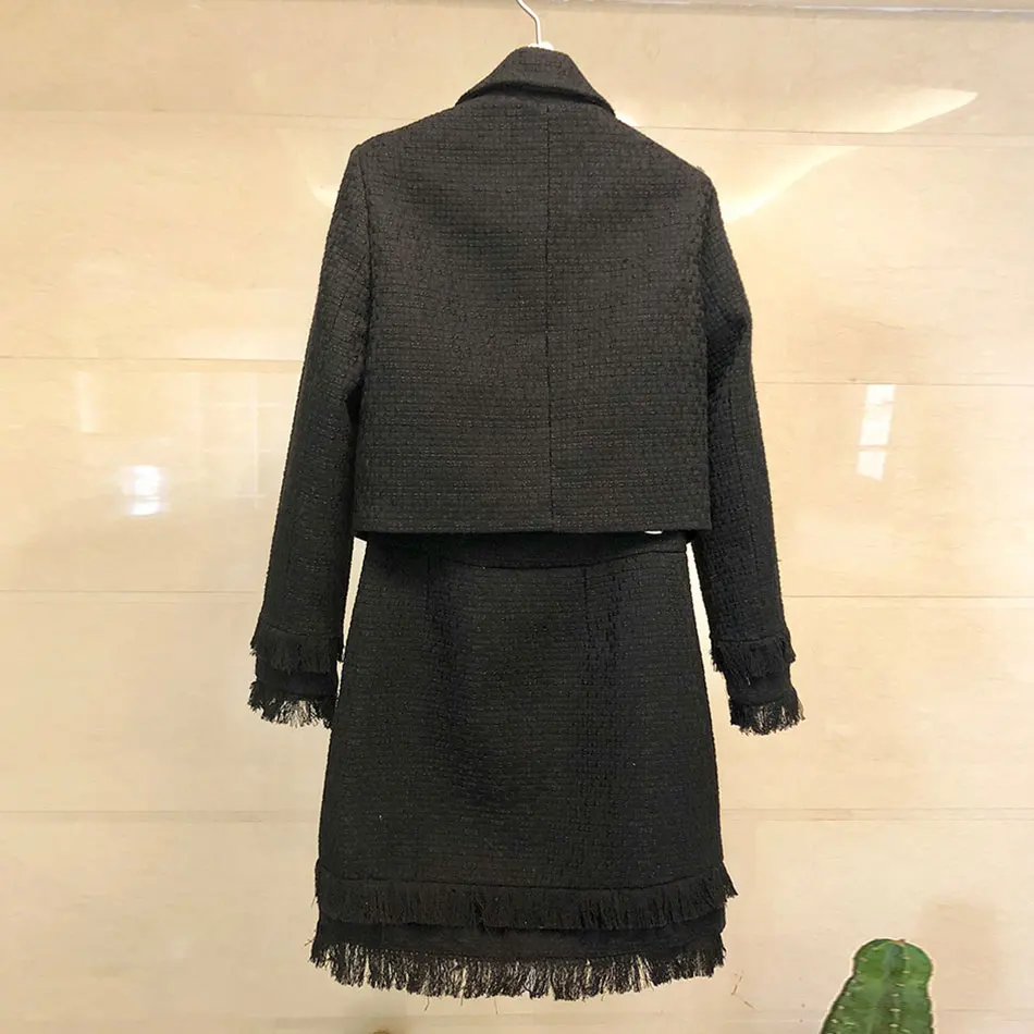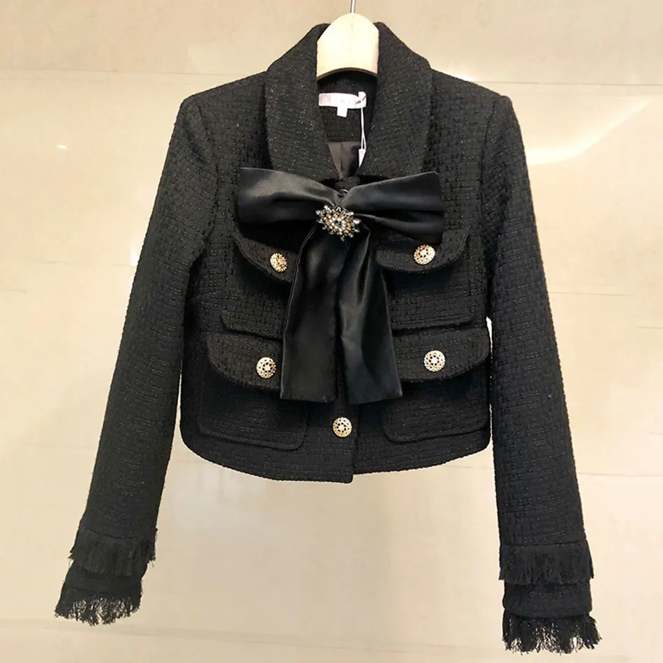 Женский шерстяной подиумный комплект из 2 предметов, роскошный твидовый короткий жакет с бантом и юбка с кисточками, золотистого цвета, зима 2021