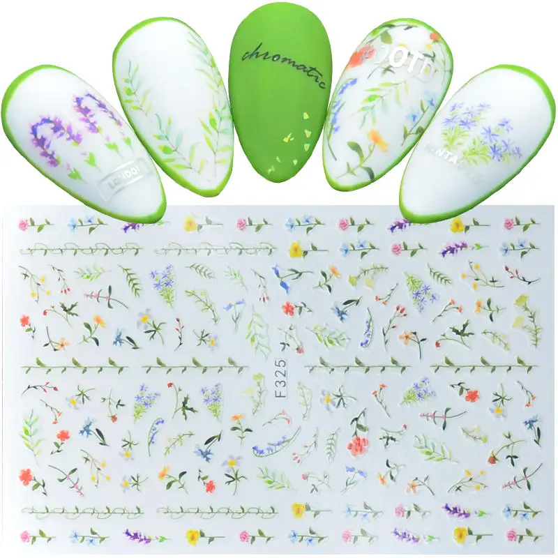 1 лист, 3D наклейки для ногтей, клейкие наклейки, цветы, листья, ге...