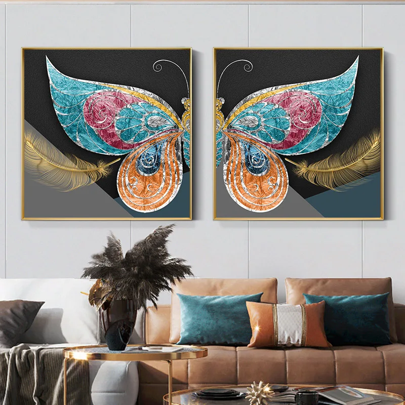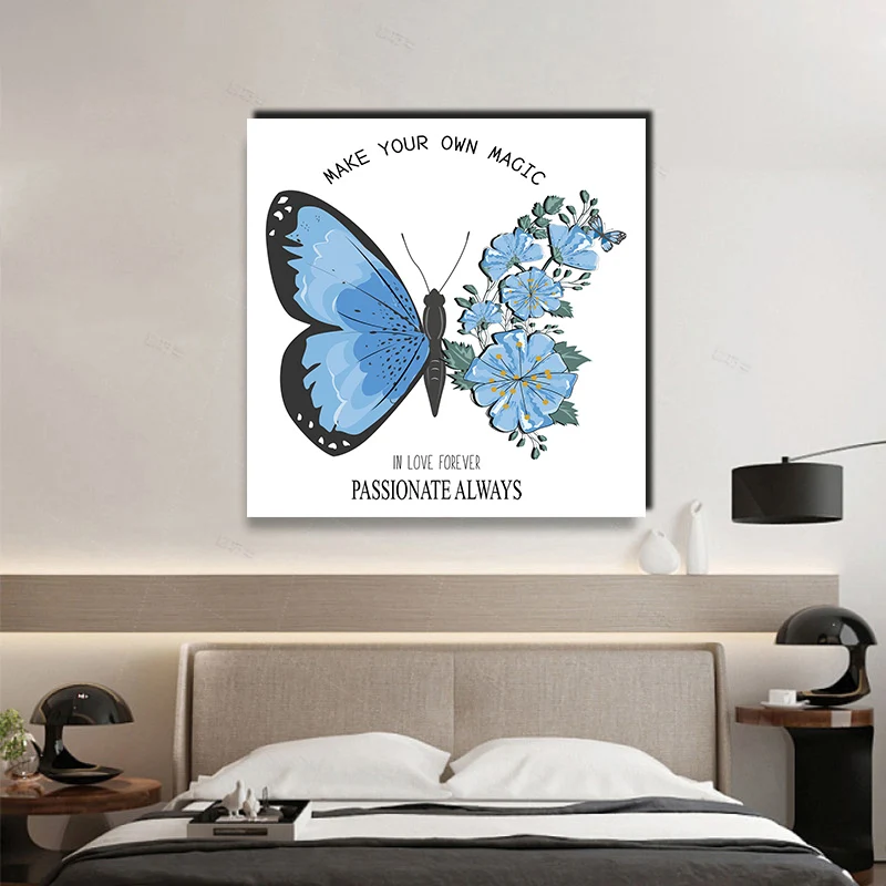 Современный постер с животными, настенная живопись на холсте, синяя бабочка, постеры и принты для украшения дома, настенные картины
