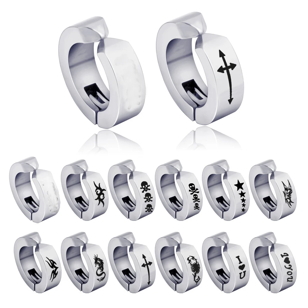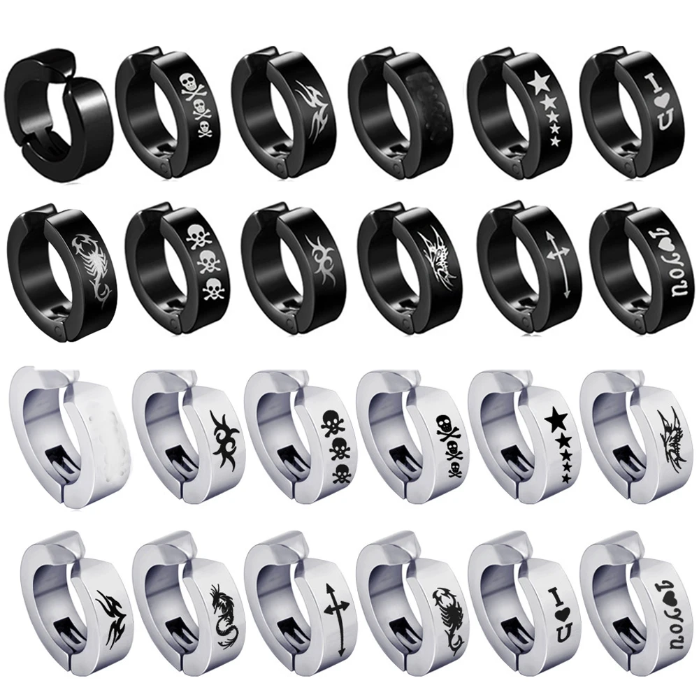 Клипсы из титановой стали для мужчин и женщин, Ювелирное Украшение в стиле панк с принтом черного цвета без проколов с имитацией кругов ушей, хип-хоп, 1 штука