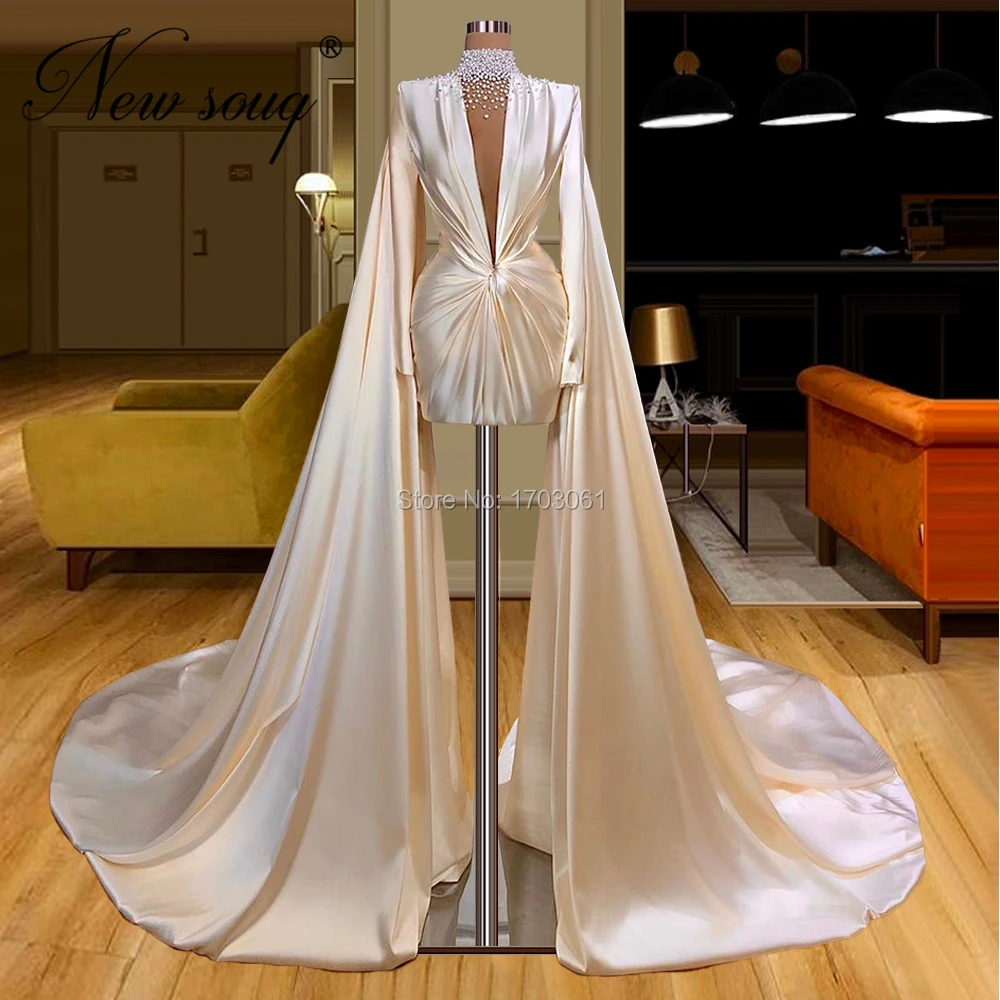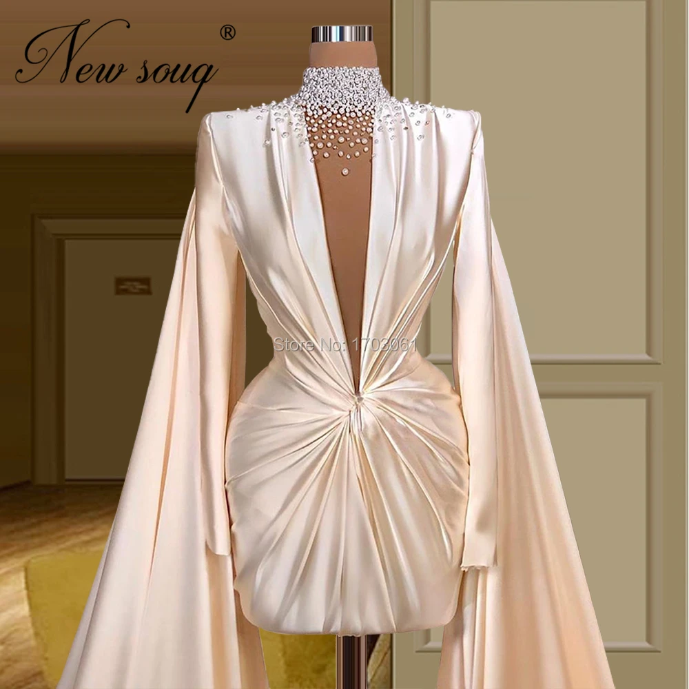 Сексуальное Атласное Вечернее платье 2020, турецкое арабское платье, вечернее платье с длинным рукавом, платья для выпускного вечера, вечернее платье с бусинами, вечернее платье Саудовской Аравии