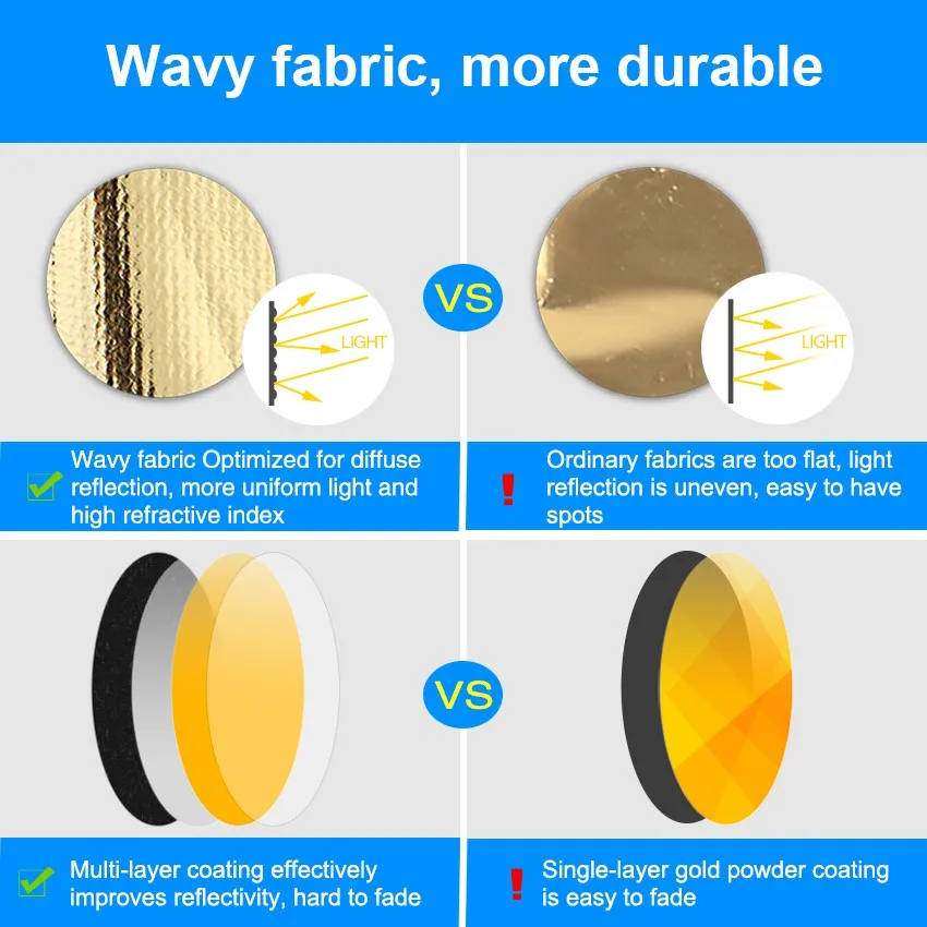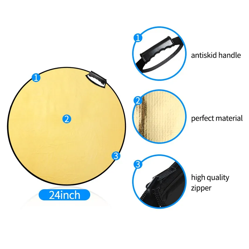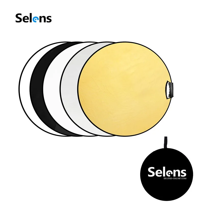 Складной отражатель Selens 5 в 1 является универсальным в поле и в студии, обеспечивая детализацию теней в вашем предмете, используя Доступное или студийное освещение. Он начинается как полупрозрачный белый диск-идеально подходит для смягчения прямого солнца или света без диффузии. Используйте съемный, Реверсивный чехол на молнии, чтобы отразить светильник в теневых областях вашего предмета. Ваш выбор цвета-серебряный, золотой, белый, Золотой/Серебряный микс-будет зависеть от условий освещения и ваших личных предпочтений.