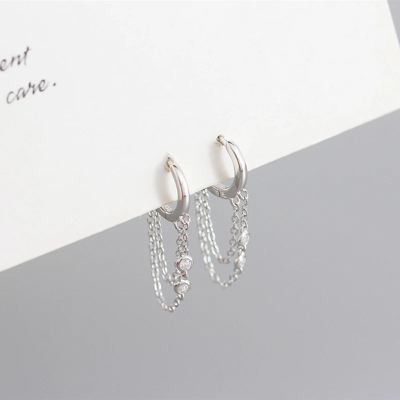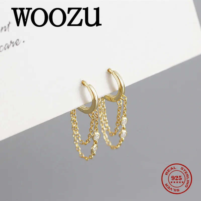 WOOZU натуральная 925 Стерлинговое Серебро модный паве Циркон кубинской цепочка кольцо с кисточкой, серьги для женщин, в богемном стиле, в стиле хип-хоп ювелирные изделия