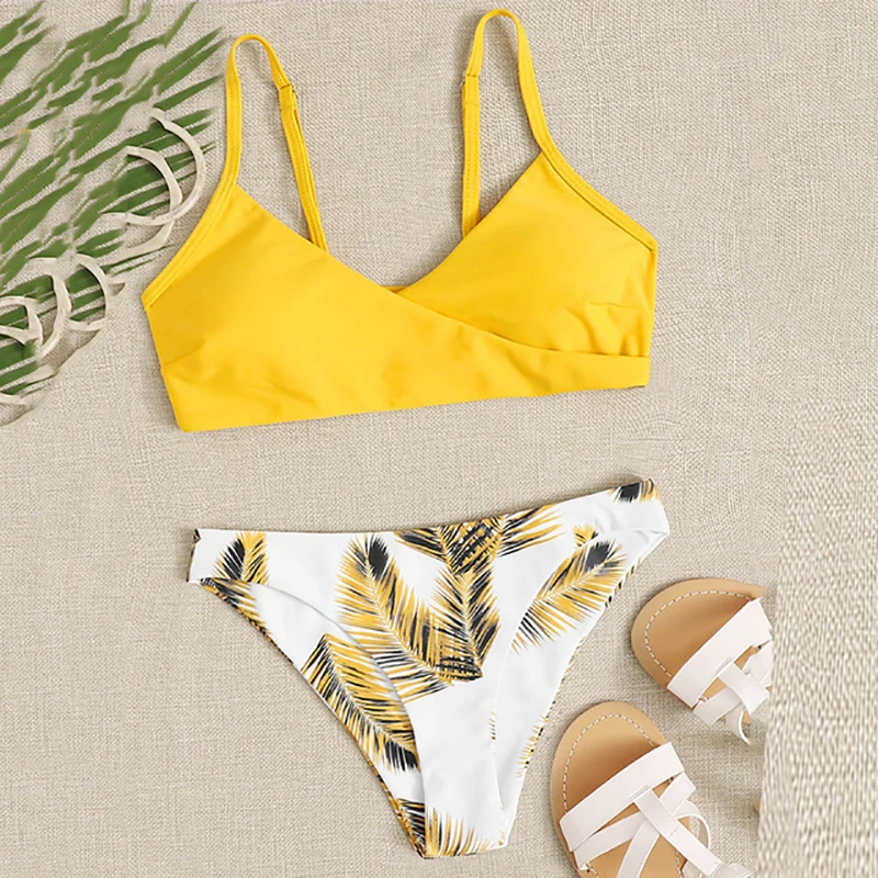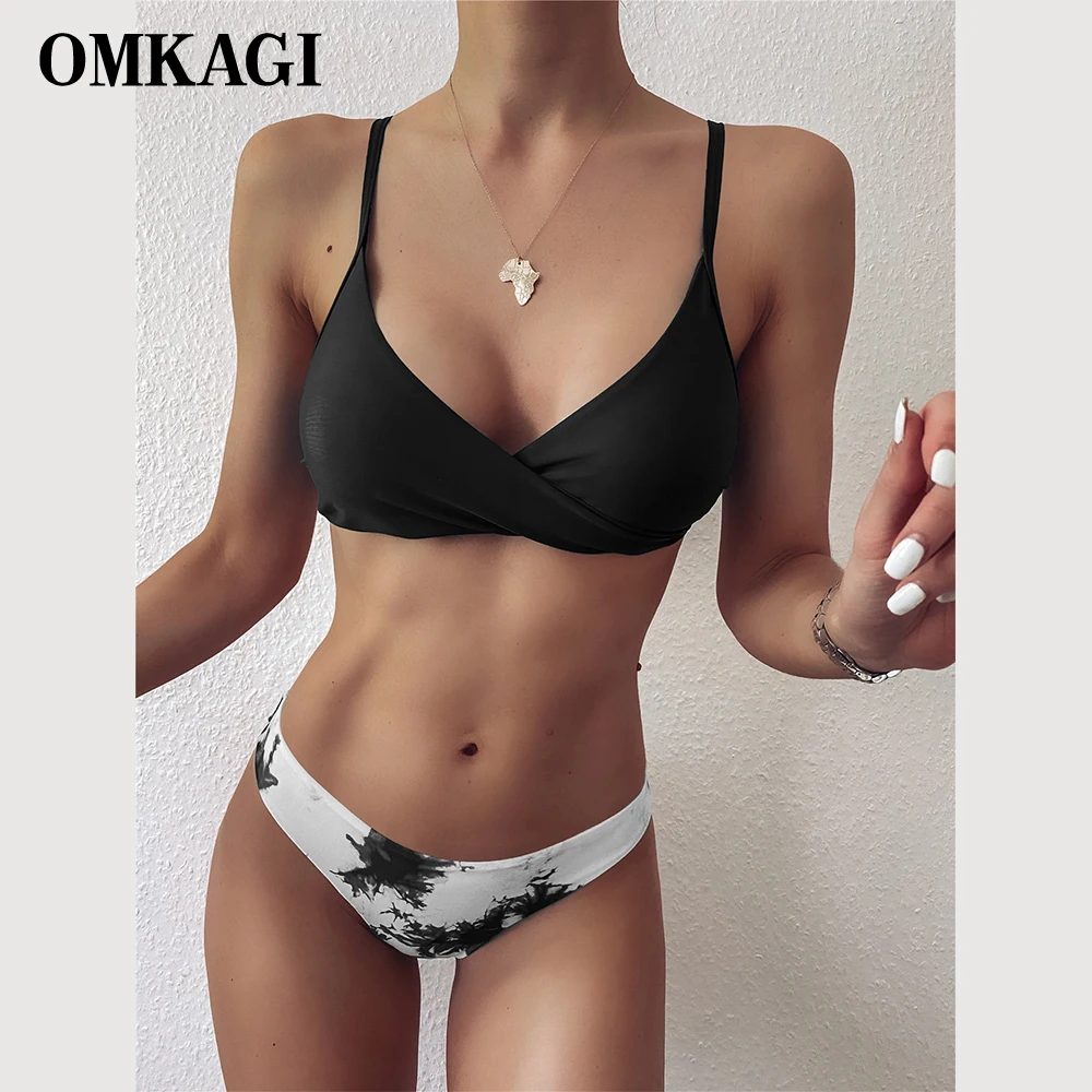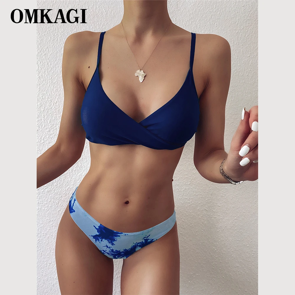 OMKAGI комплект бикини пуш-ап, женский купальник с галстуком-краской, купальный костюм с высокой кнопкой, однотонный бюстгальтер, зеленый купальник, 2021, сексуальный купальник